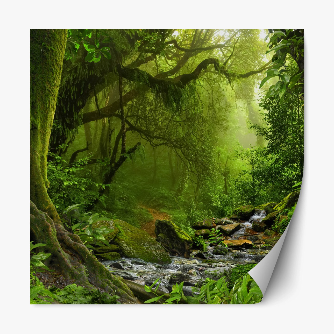 Repositionierbarer Aufkleber Verwunschener grüner wald mit bach