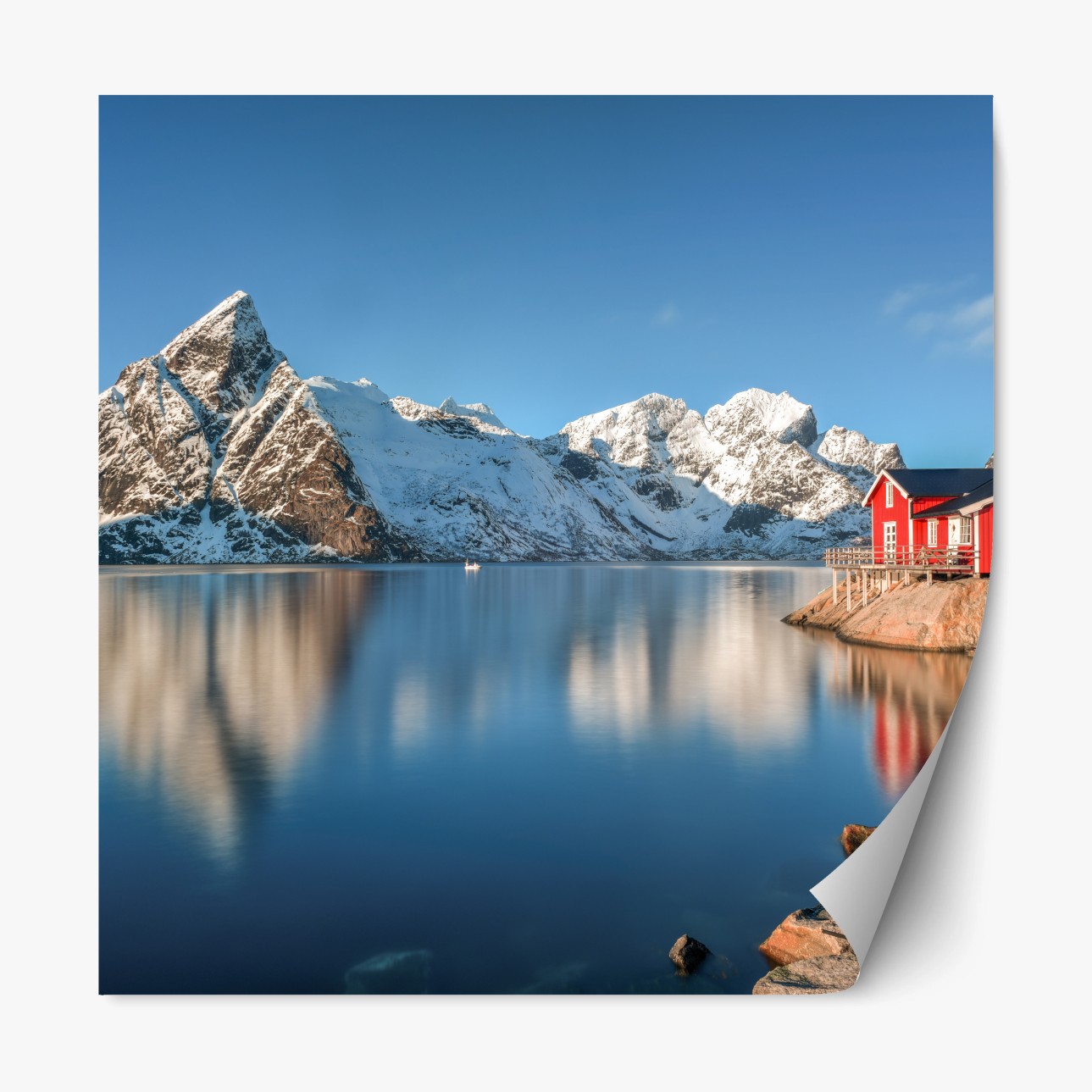 Repositionierbarer Aufkleber Ruhiger winterlicher fjord in Reine, Lofoten