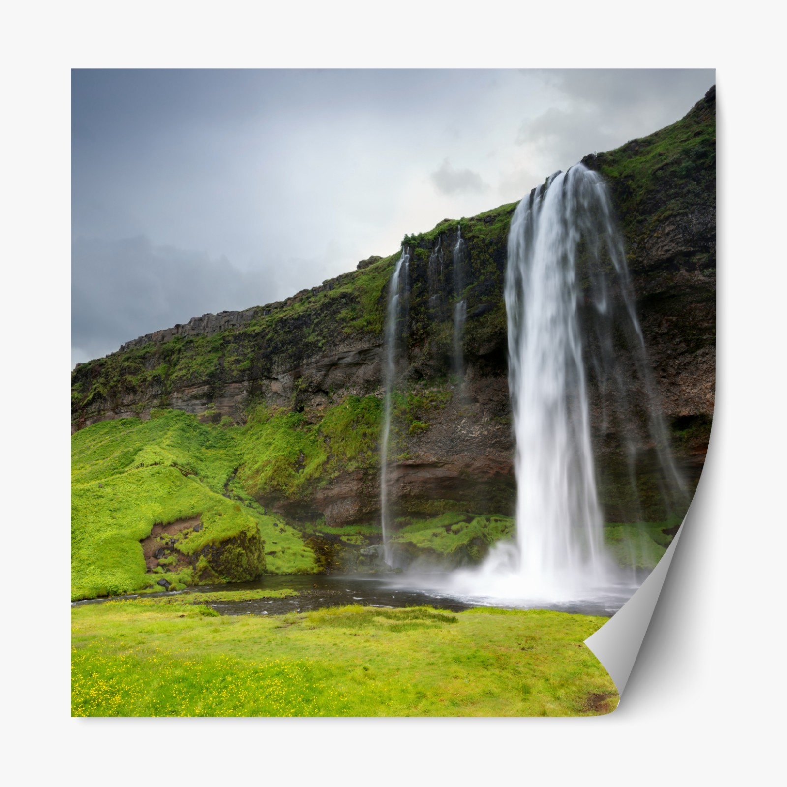 Repositionierbarer Aufkleber dramatischer wasserfall bei Seljalandsfoss, Island