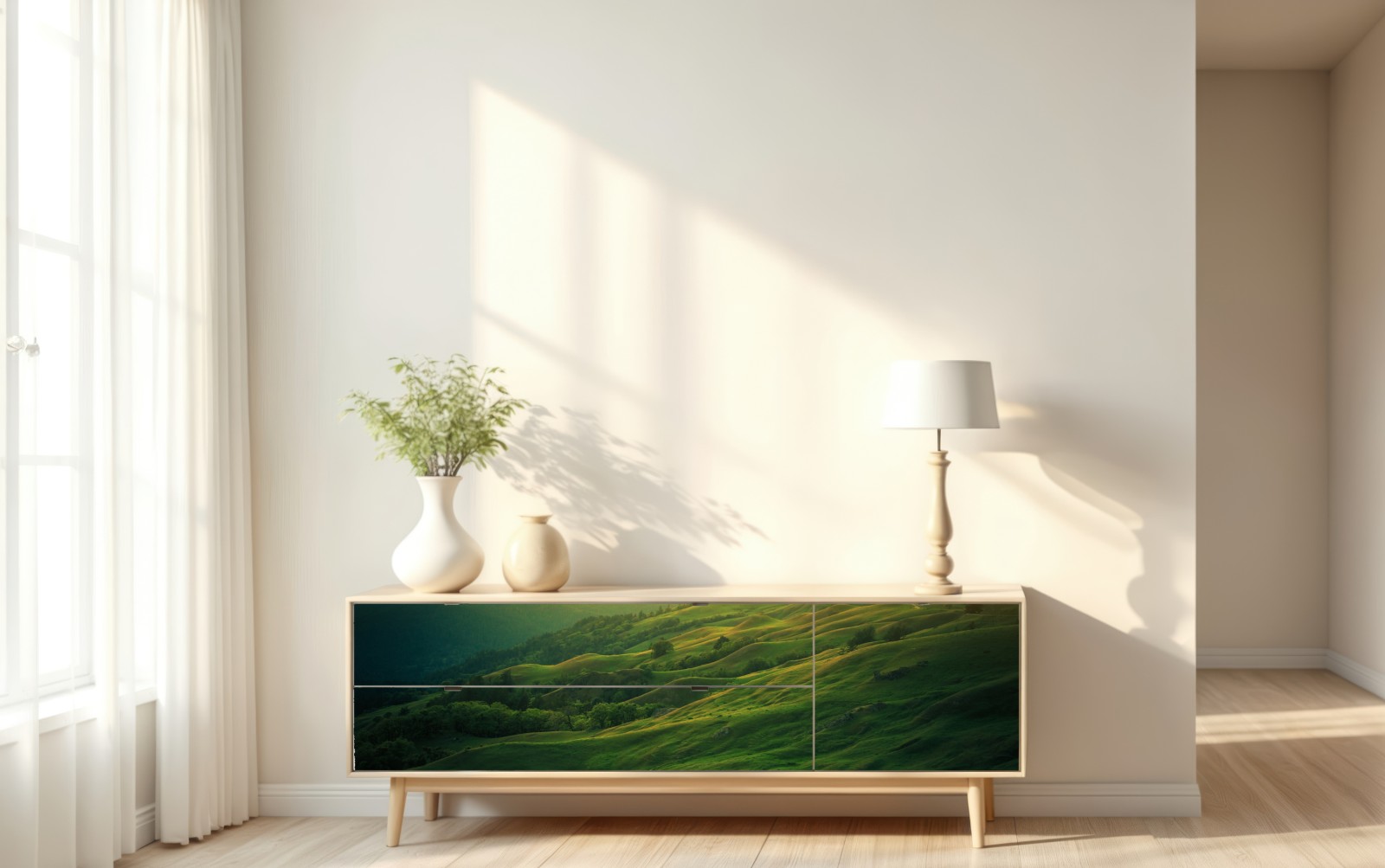 Bringen Sie ruhige, rollende Hügel und warmes Sonnenuntergangslicht in Ihren Raum mit dieser malerischen Aussicht aus Nordkalifornien.