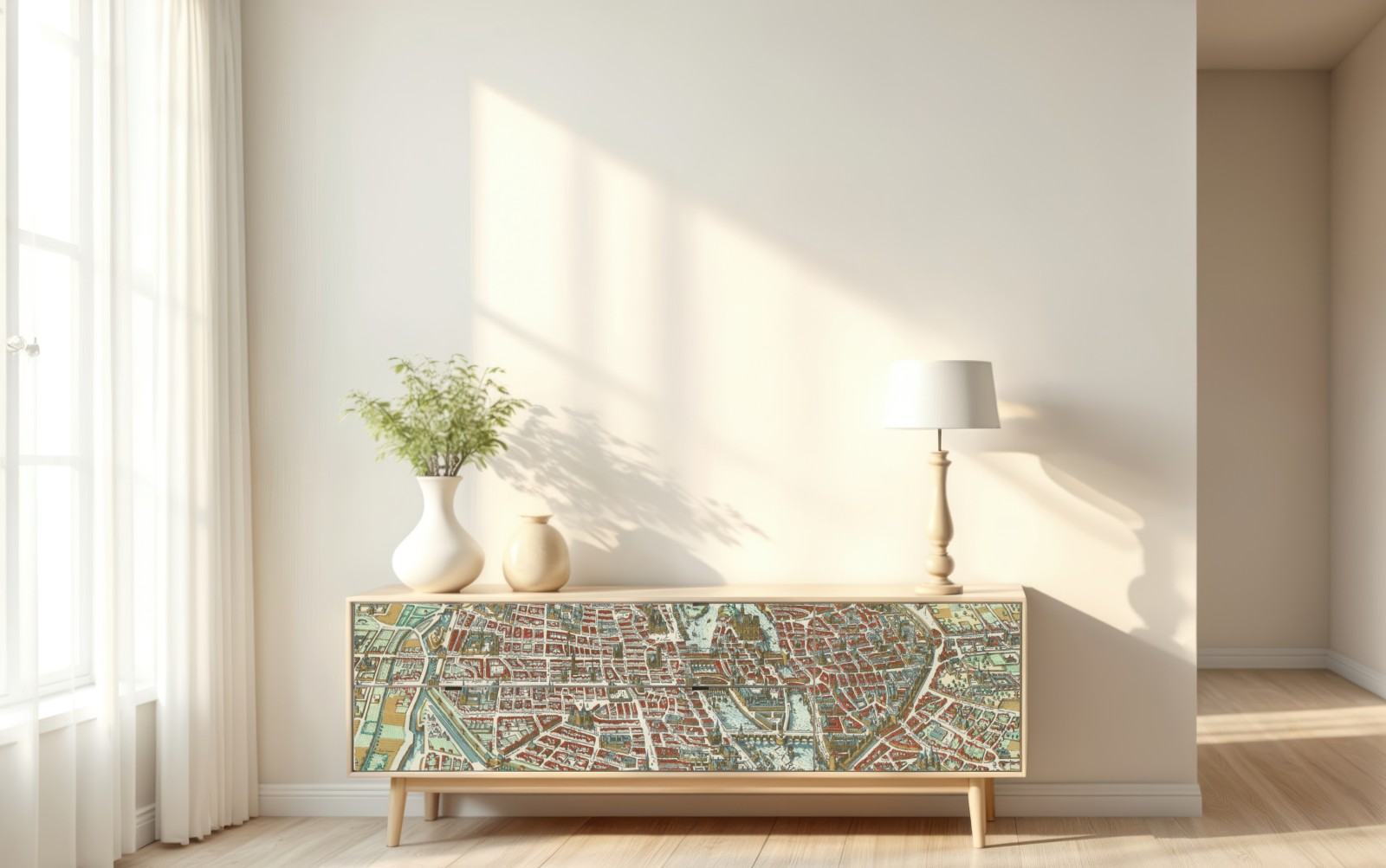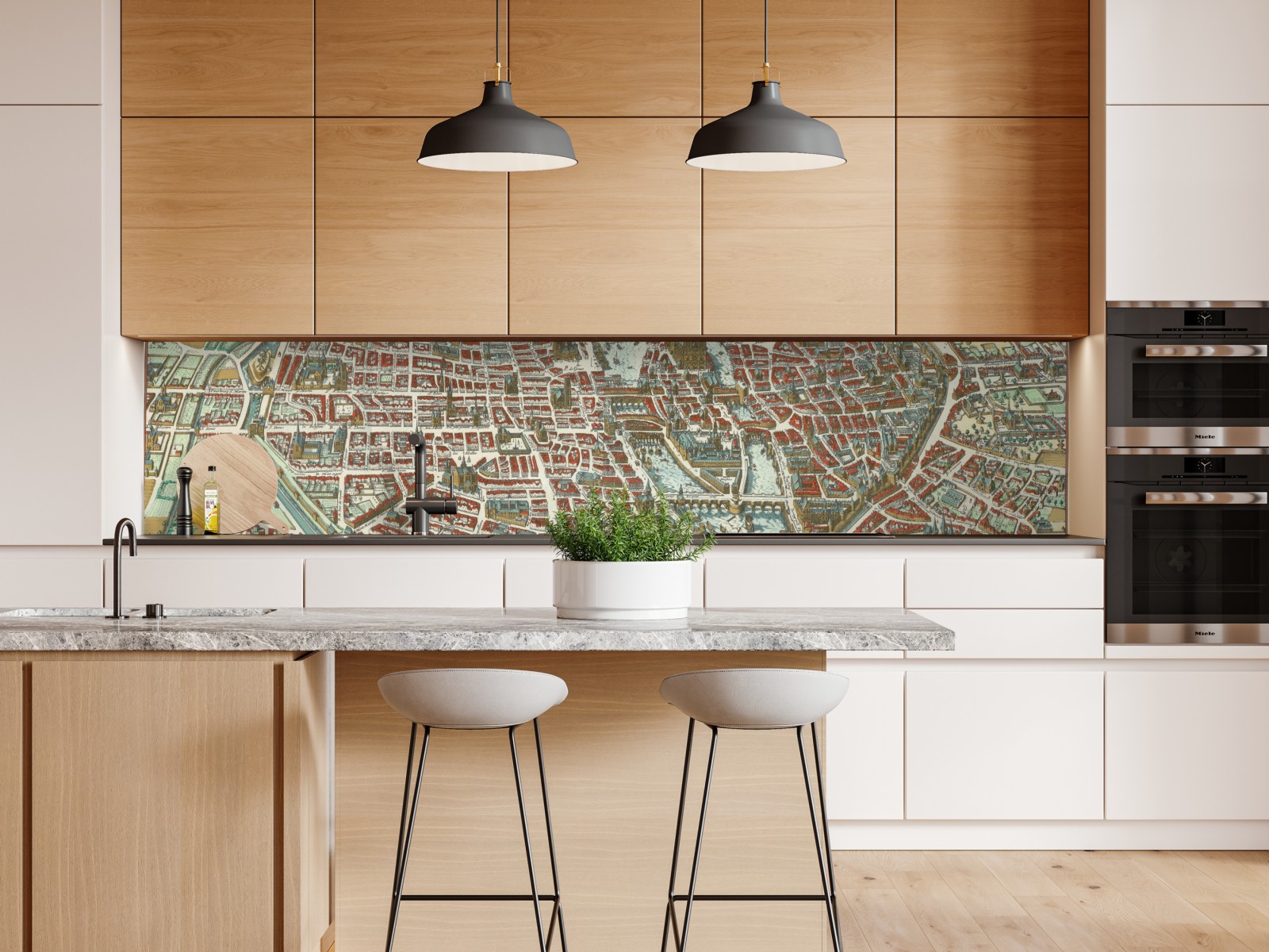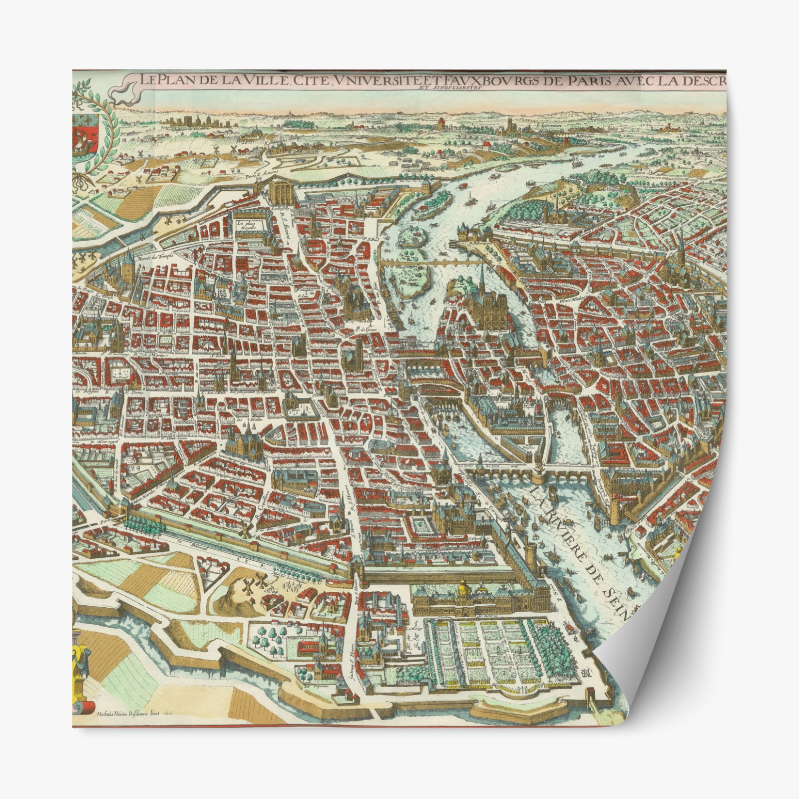 Detaillierte antike Karte von Paris verleiht Büros und Wohnräumen historischen Charme und elegante Atmosphäre.