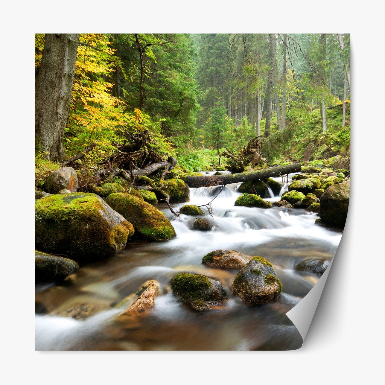 Repositionierbarer Aufkleber Moosbedeckter waldbach im herbst