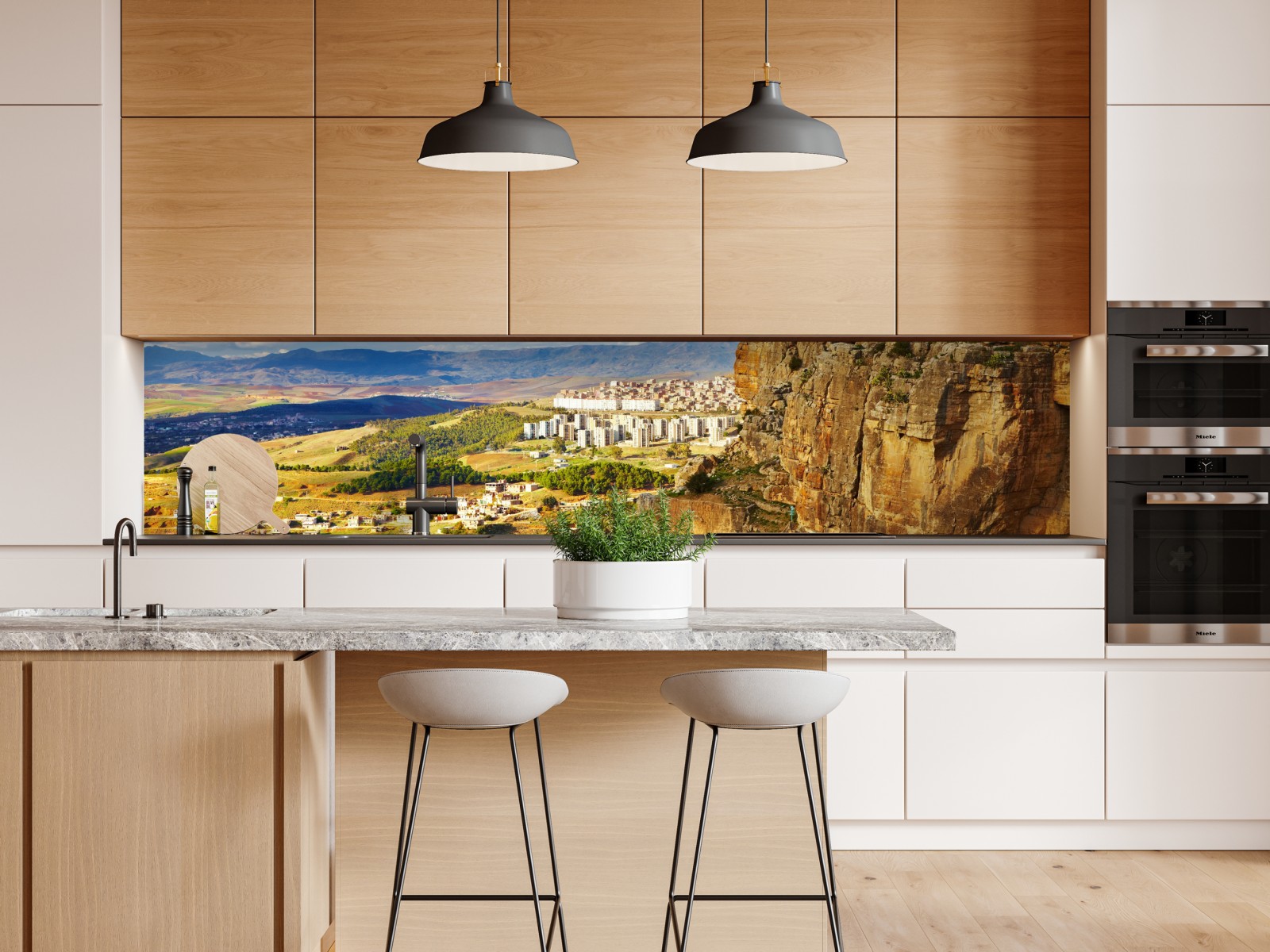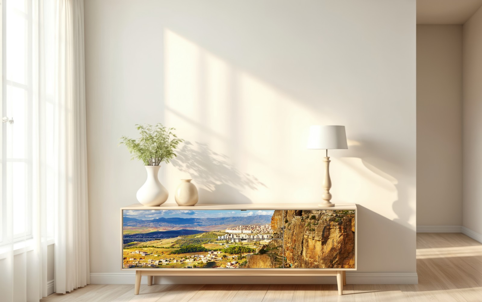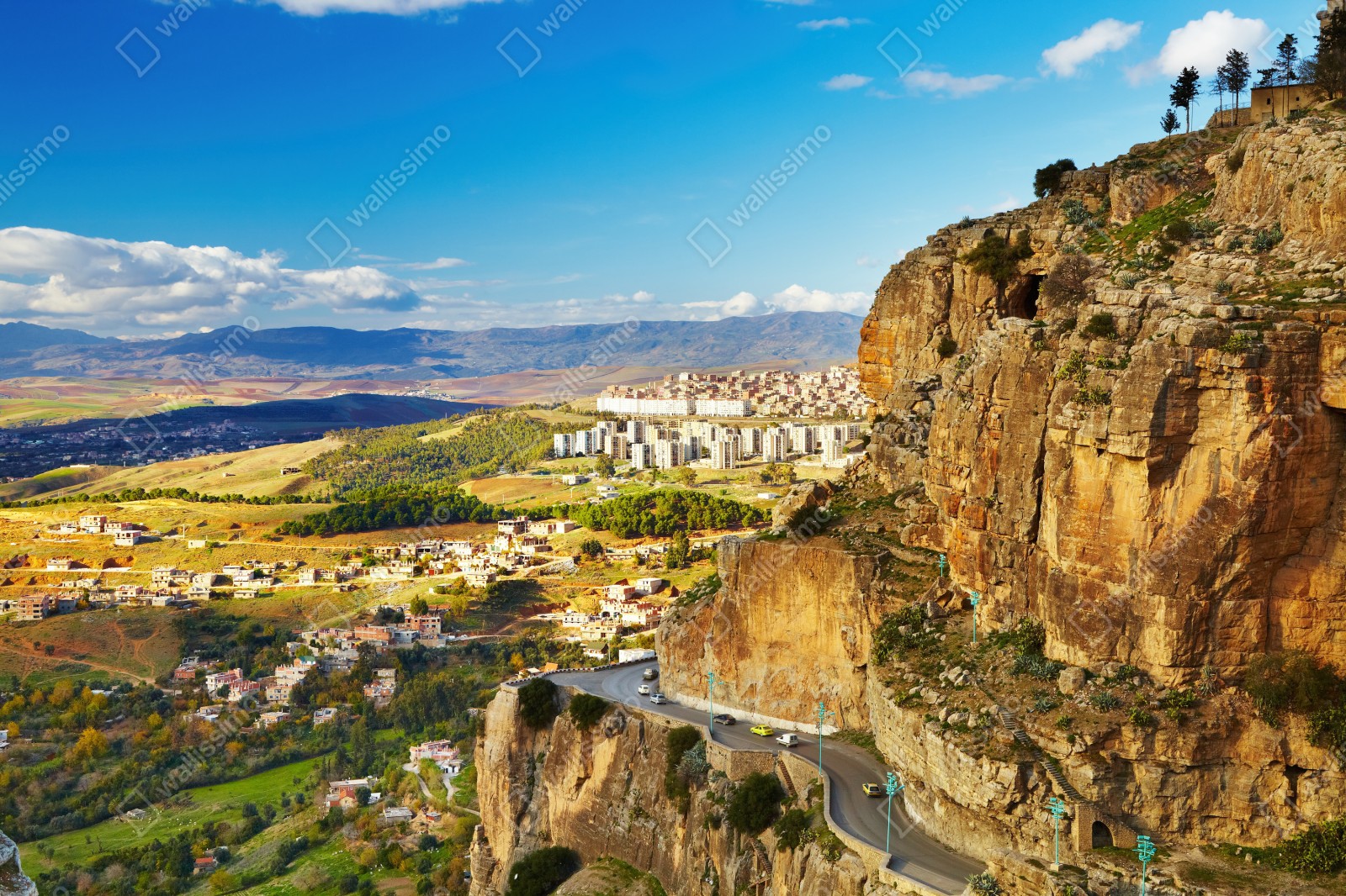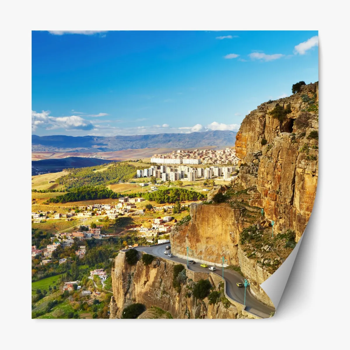 Ein eindrucksvolles Panorama der Klippen und der kurvigen Straße von Constantine, perfekt für ein modernes Wohnzimmer oder Büro.