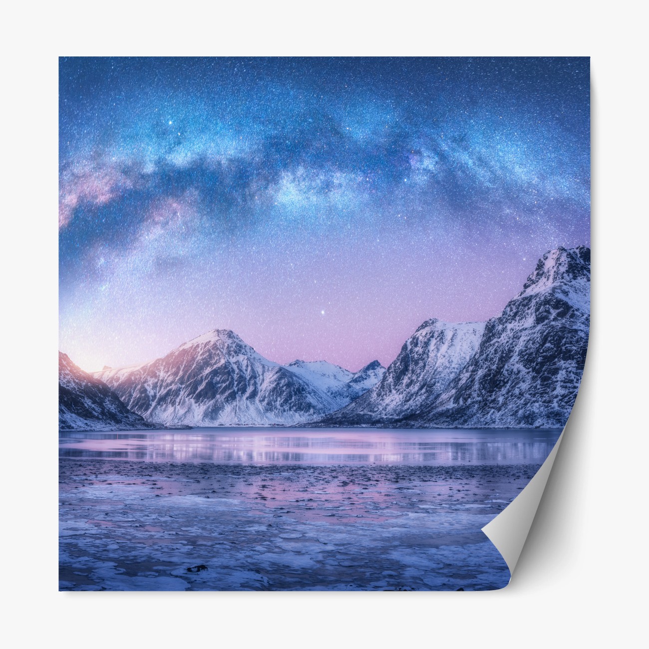 Repositionierbarer Aufkleber Ruhige arktische bergnacht unter der milchstraße