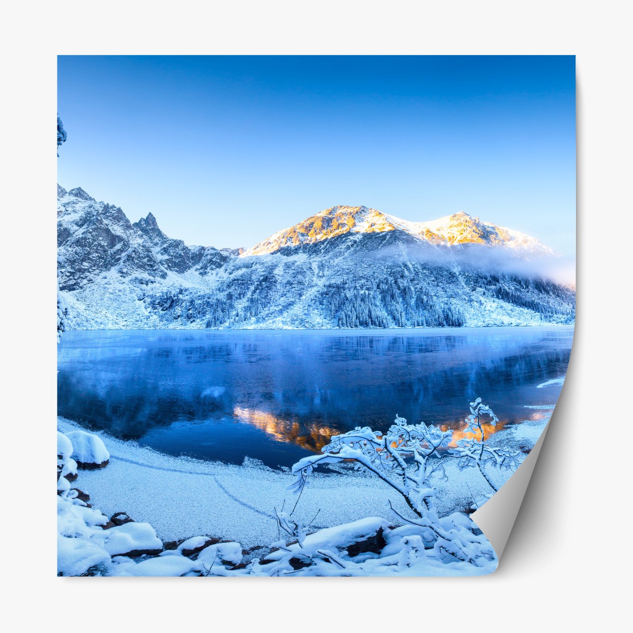 Repositionierbarer Aufkleber Winterlicher sonnenaufgang über dem gefrorenen bergsee