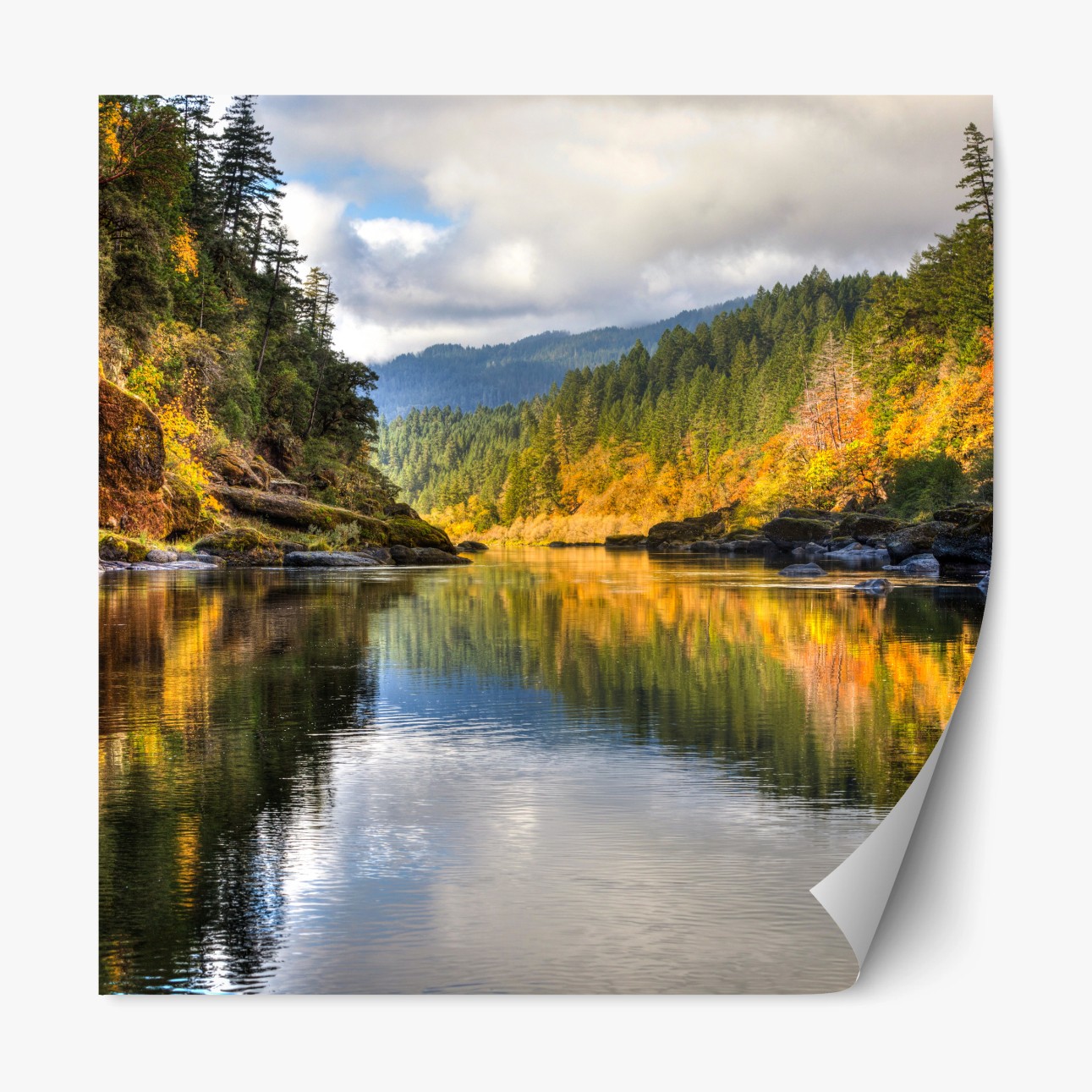 Repositionierbarer Aufkleber Rogue River herbstliche spiegelungen