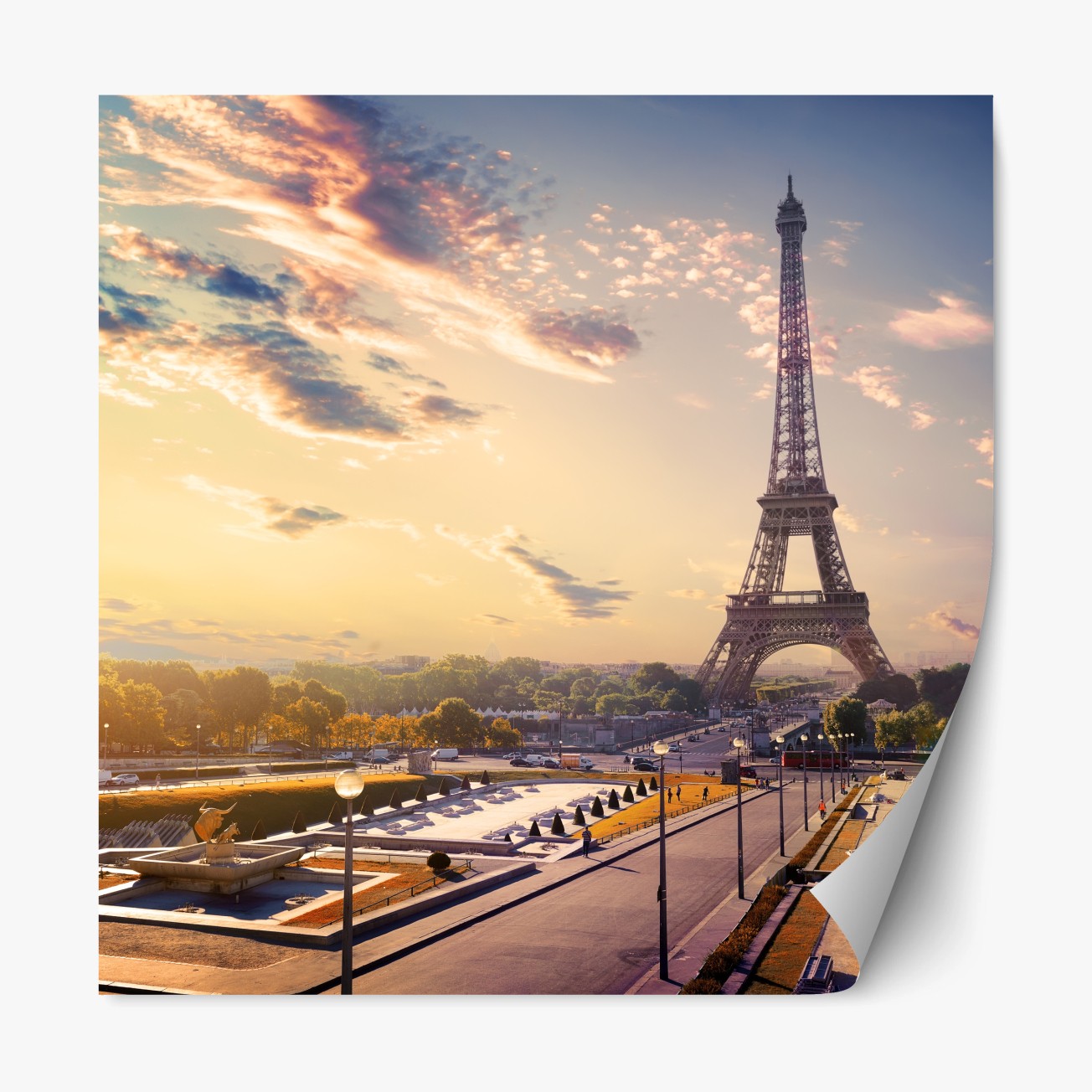 Repositionierbarer Aufkleber Sonnenbeschienener blick auf den Eiffelturm bei dämmerung