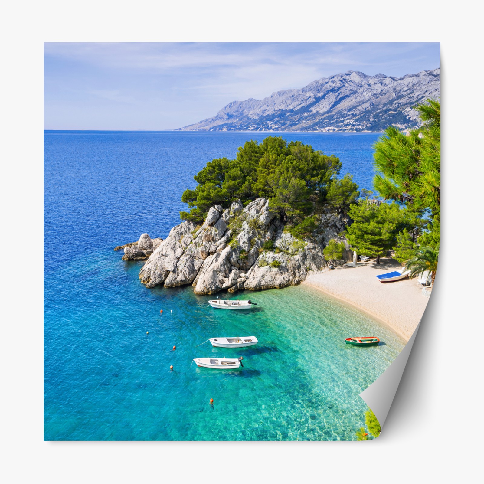 Repositionierbarer Aufkleber ruhige türkisfarbene bucht mit booten