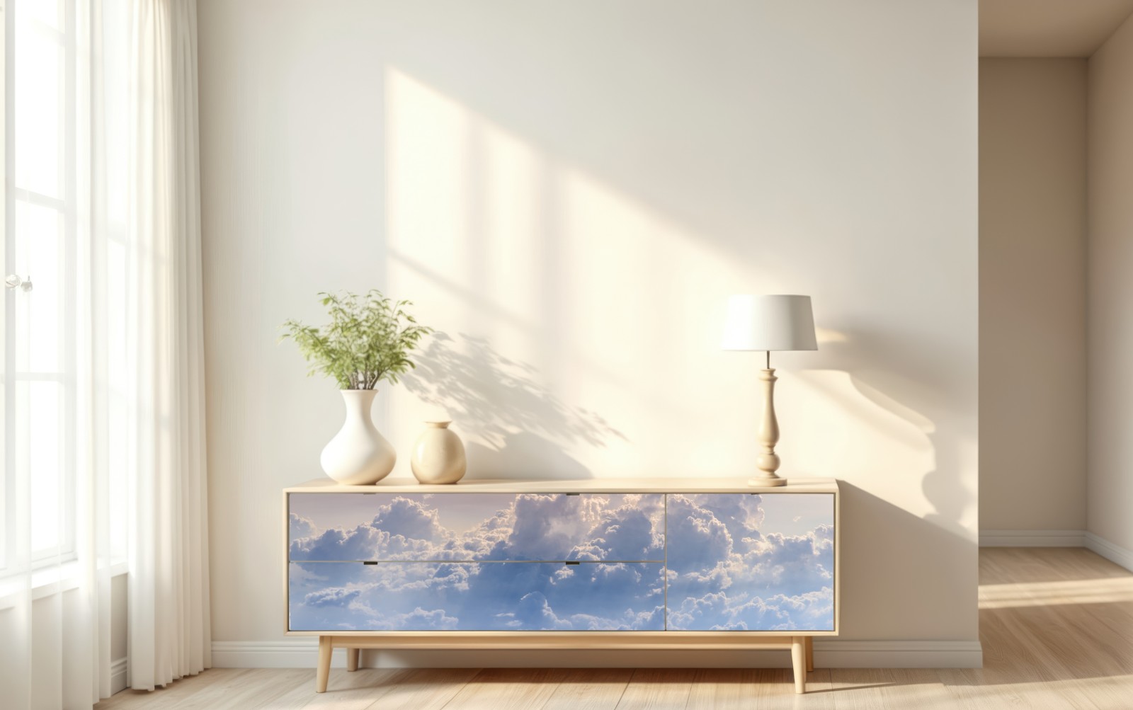 Repositionierbarer Aufkleber sanfte wolken über dem blauen himmel