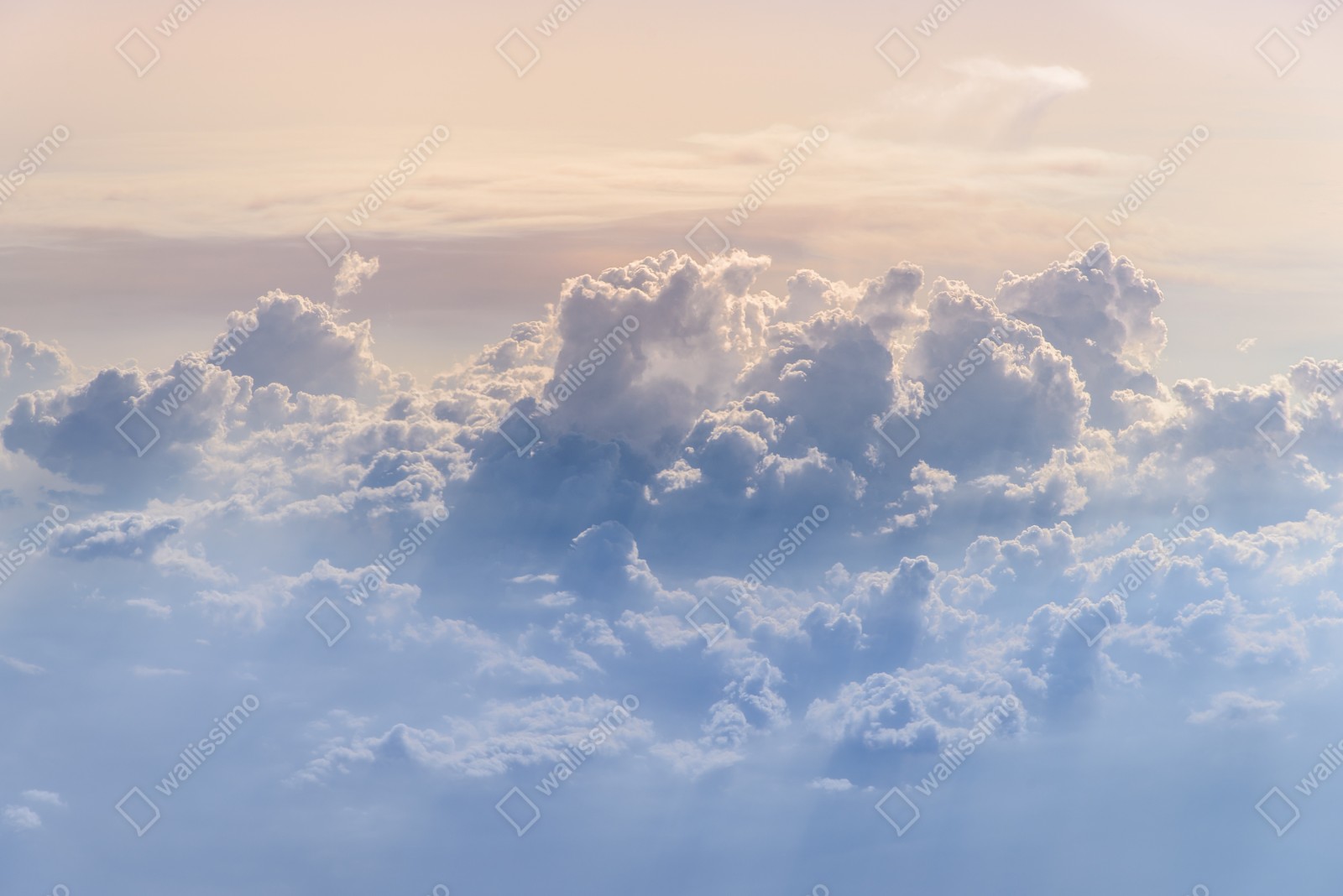 Ein ruhiger Luftblick auf flauschige Wolken und sanftes Licht, ideal zur Schaffung einer entspannenden Atmosphäre.