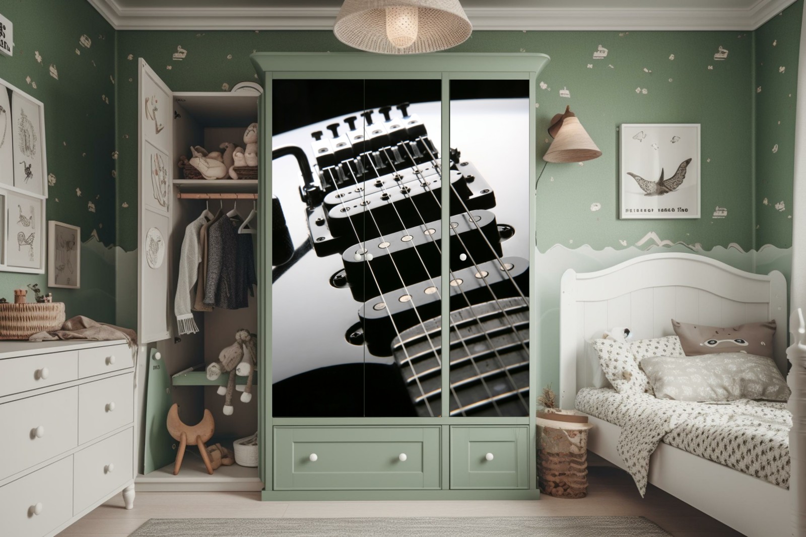 Schrankaufkleber Nahaufnahme einer schwarzen elektrogitarre