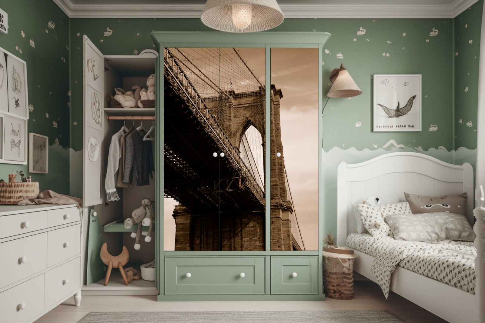 Schrankaufkleber Sepia ansicht der Brooklyn Bridge