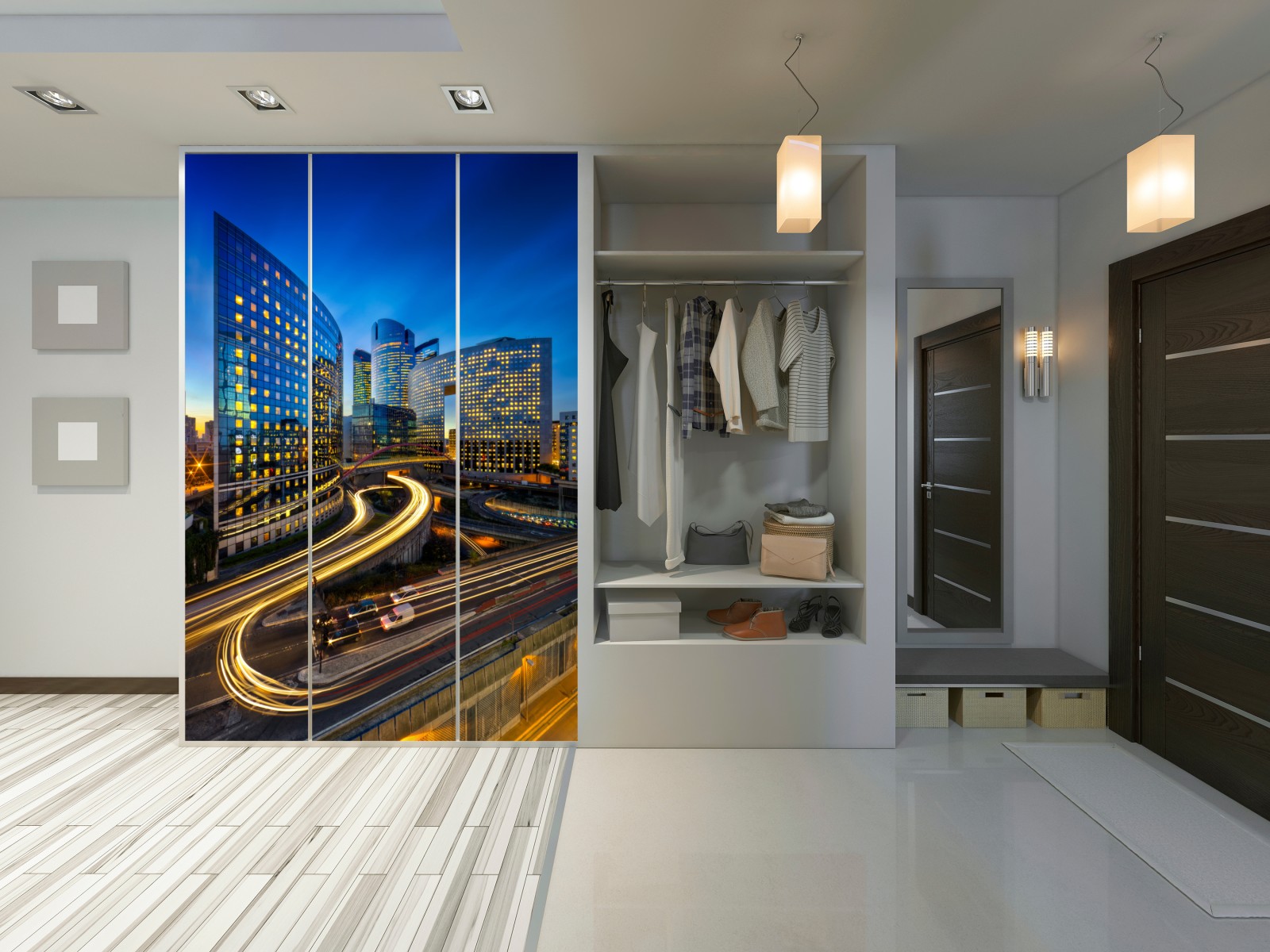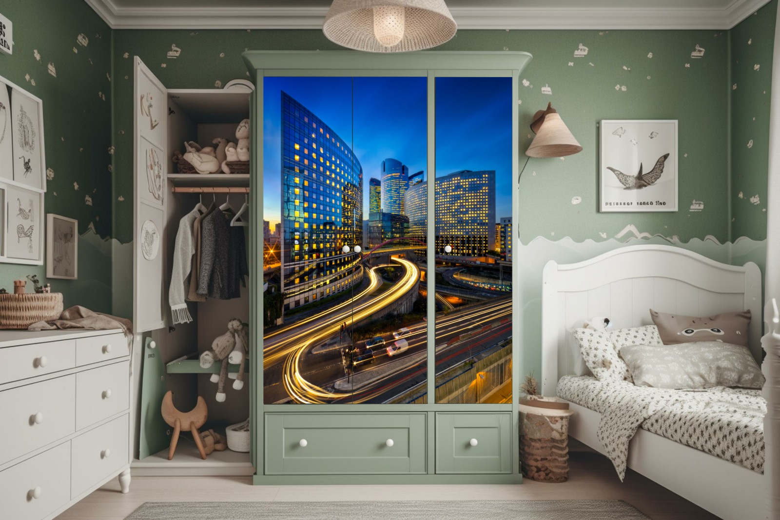 Schrankaufkleber Moderne stadtsilhouette bei dämmerung