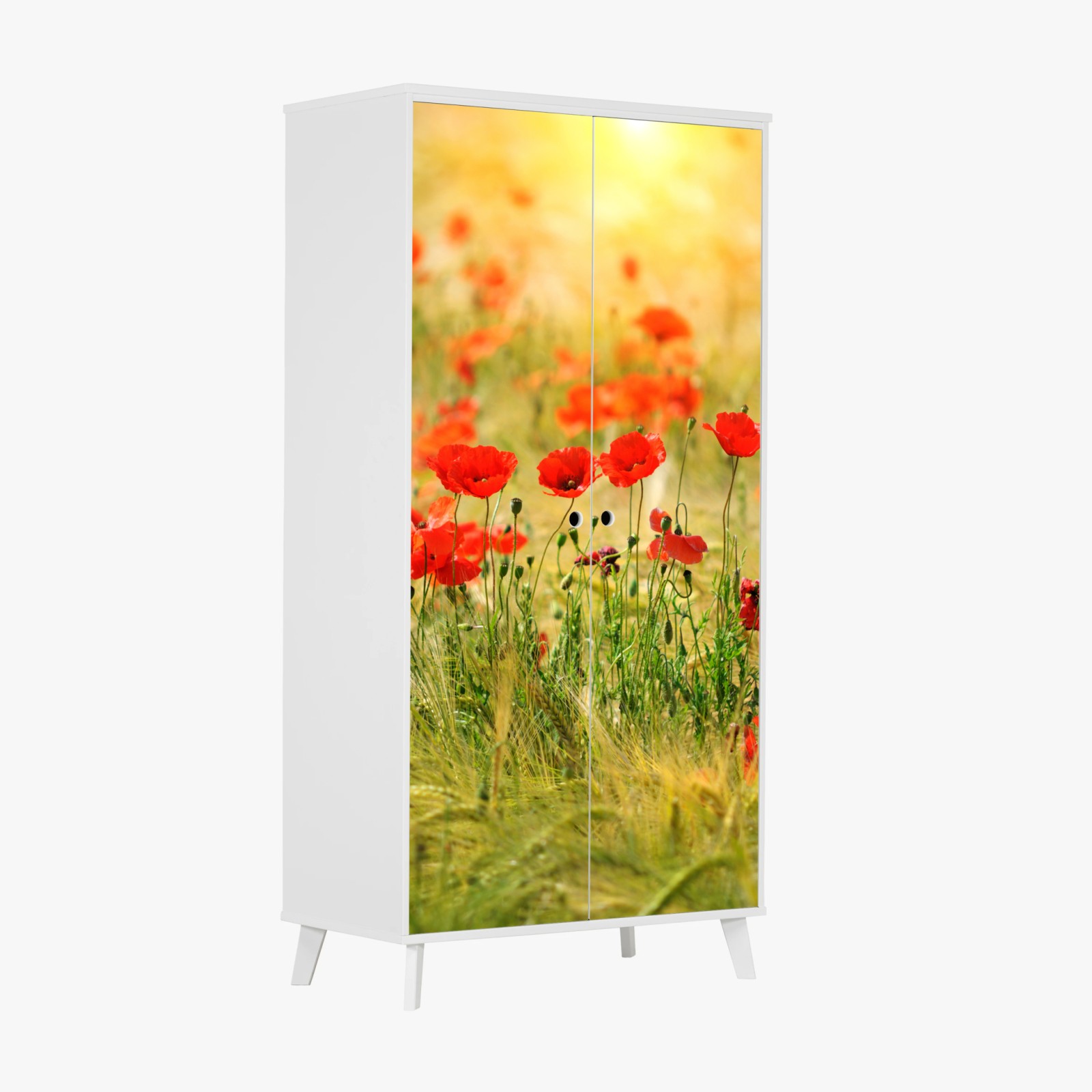 Schrankaufkleber Rote mohnwiese im sonnenlicht