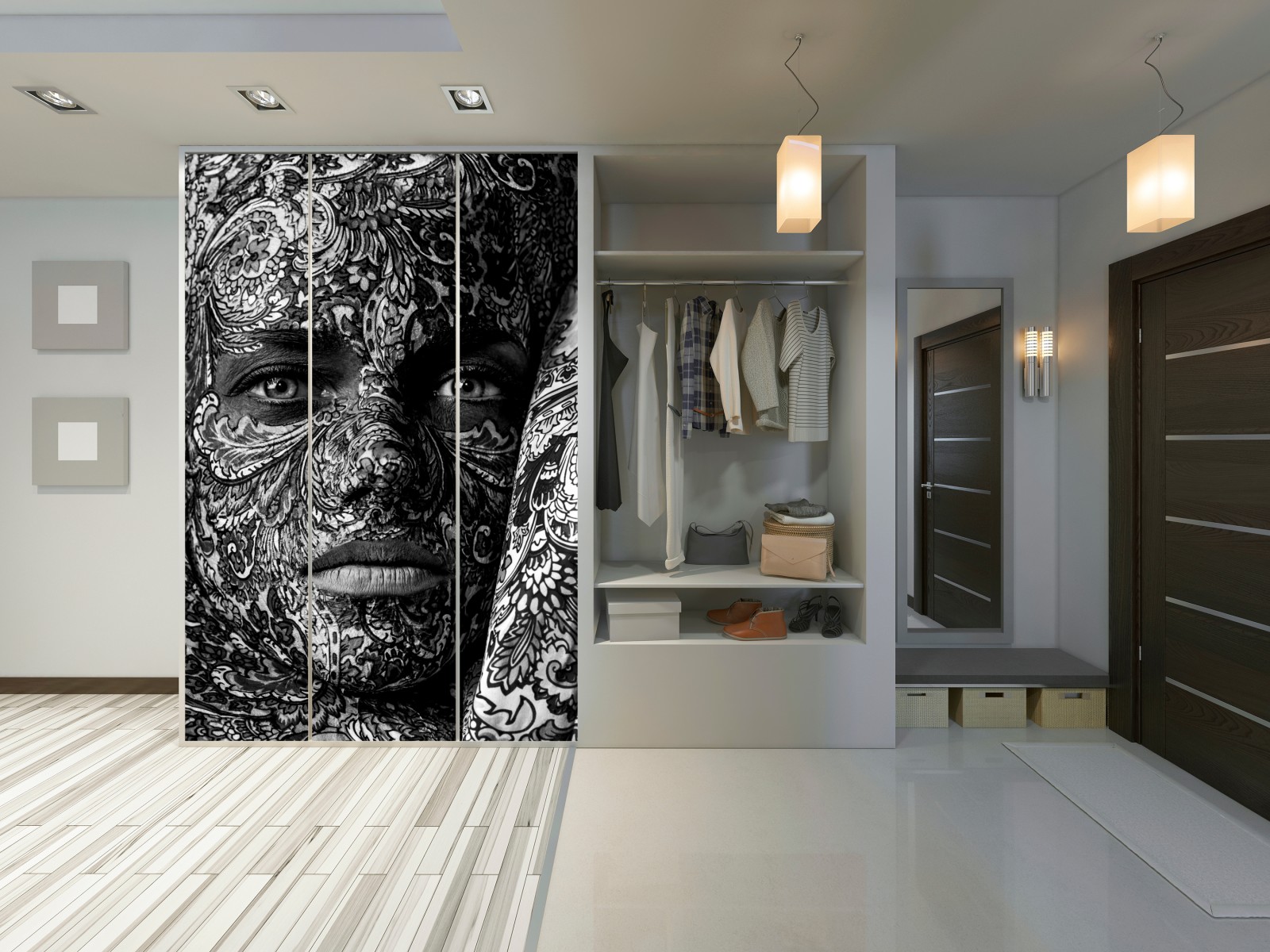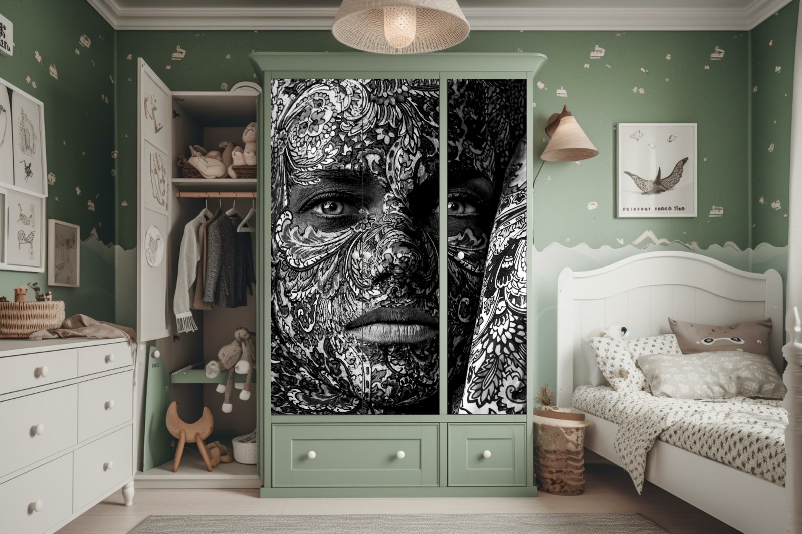 Schrankaufkleber Ornamentales porträt mit floralen mustern