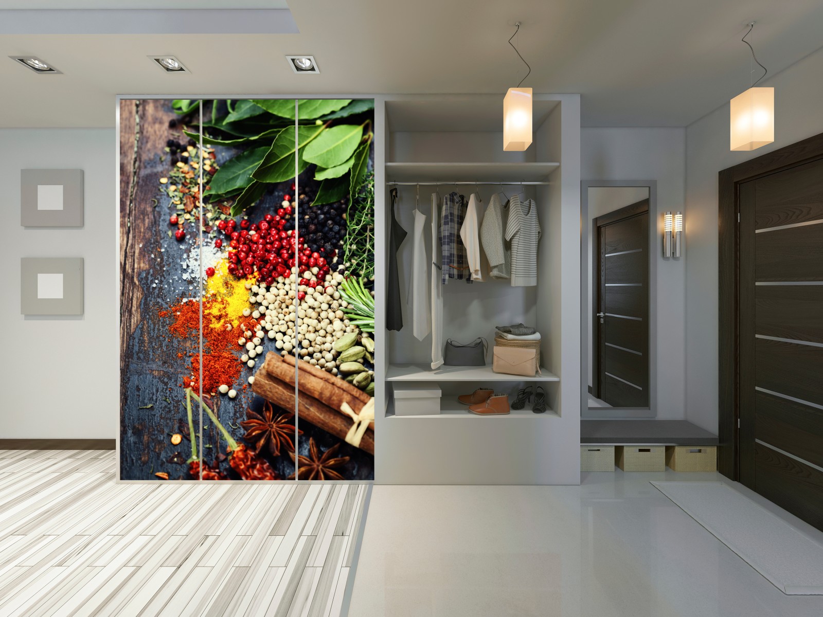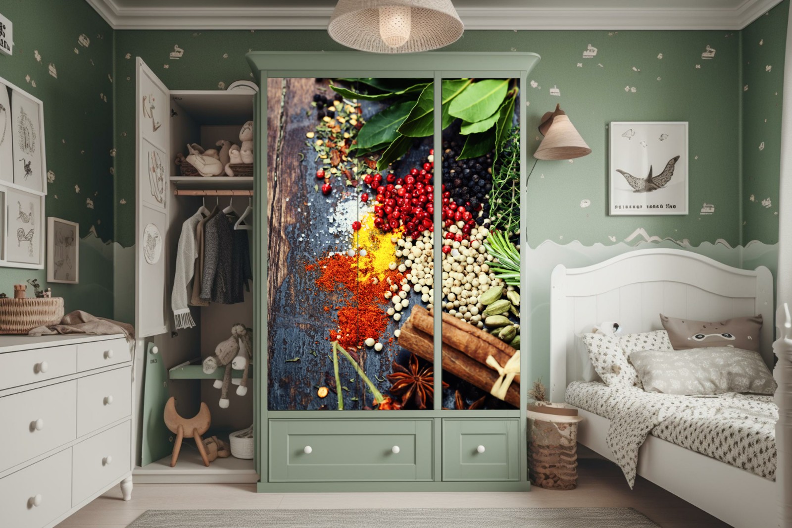 Schrankaufkleber Buntes gewürzsortiment auf rustikalem holz