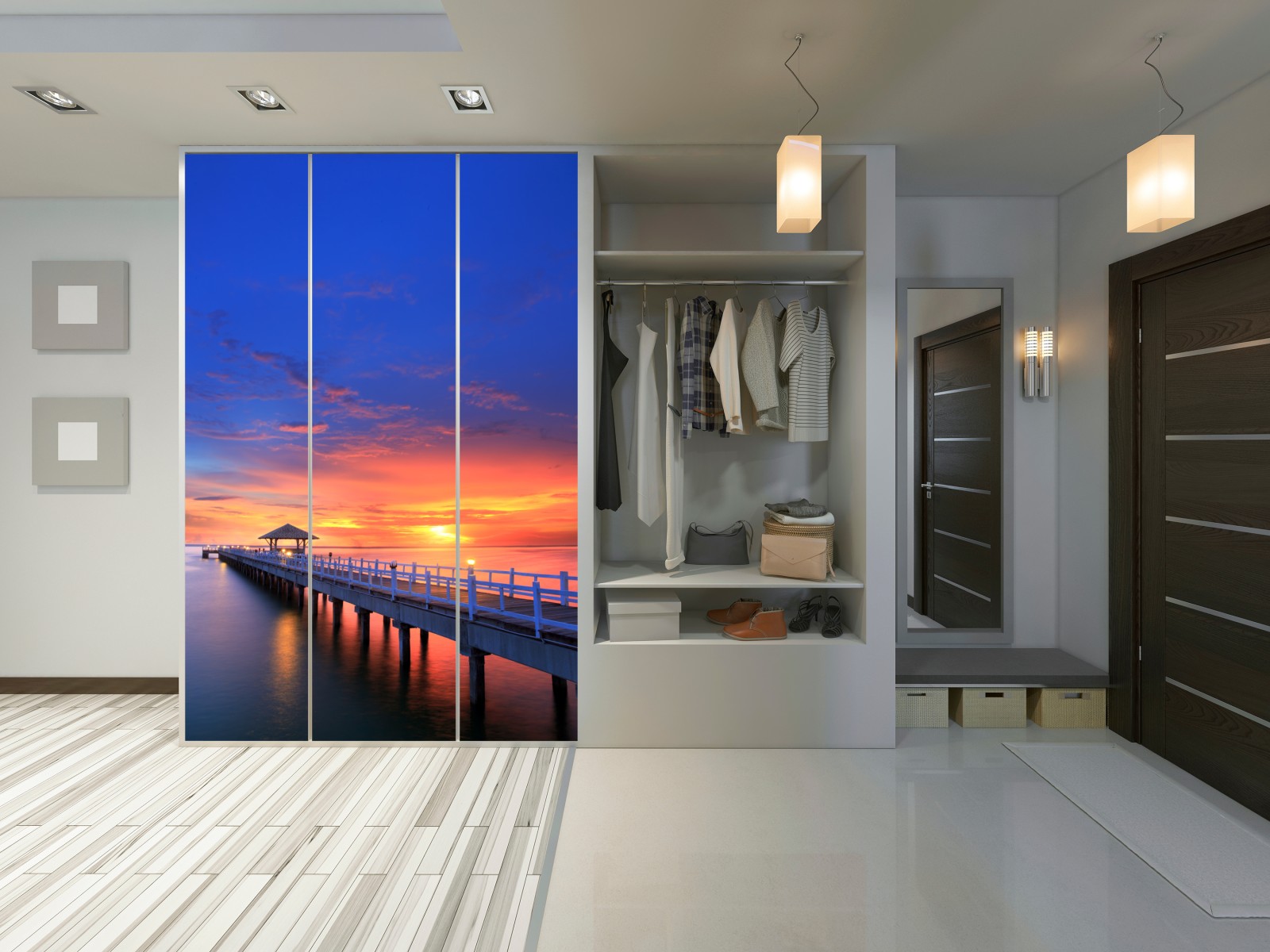 Schrankaufkleber Mole bei sonnenuntergang am strand