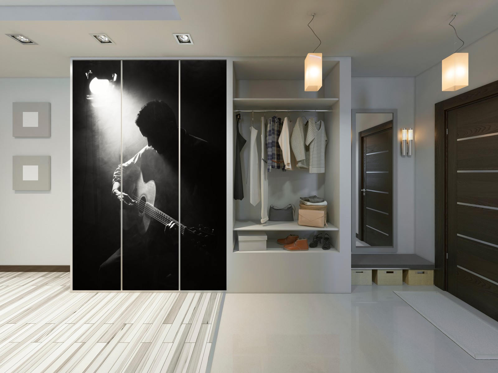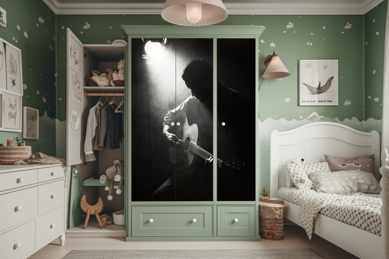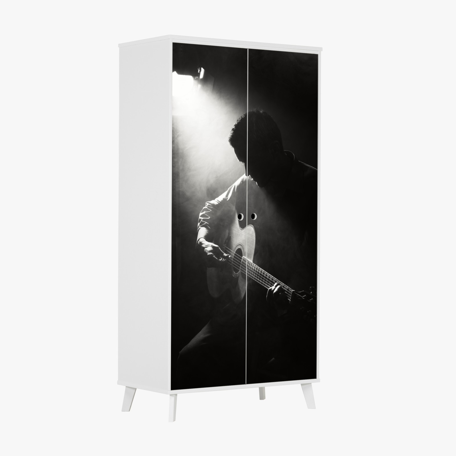 Schrankaufkleber Silhouette eines gitaristen im scheinwerferlicht