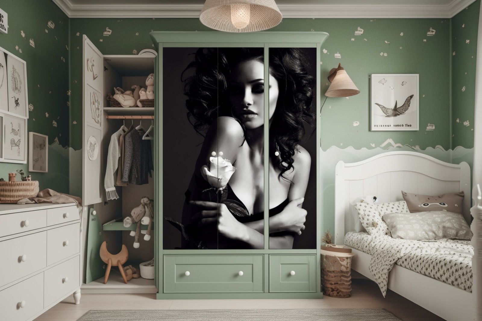 Schrankaufkleber Sinnliches schwarzweiß-porträt mit rose
