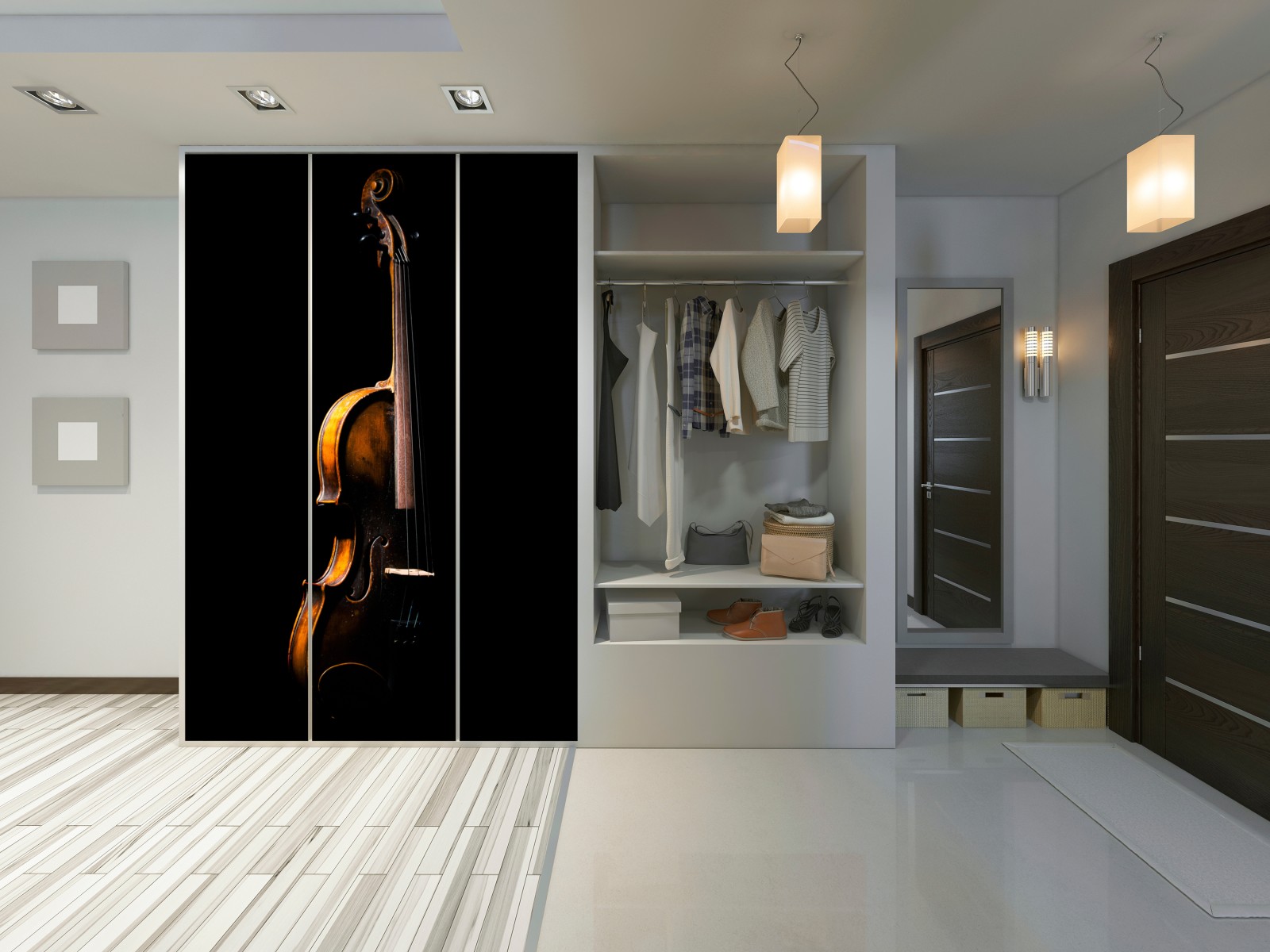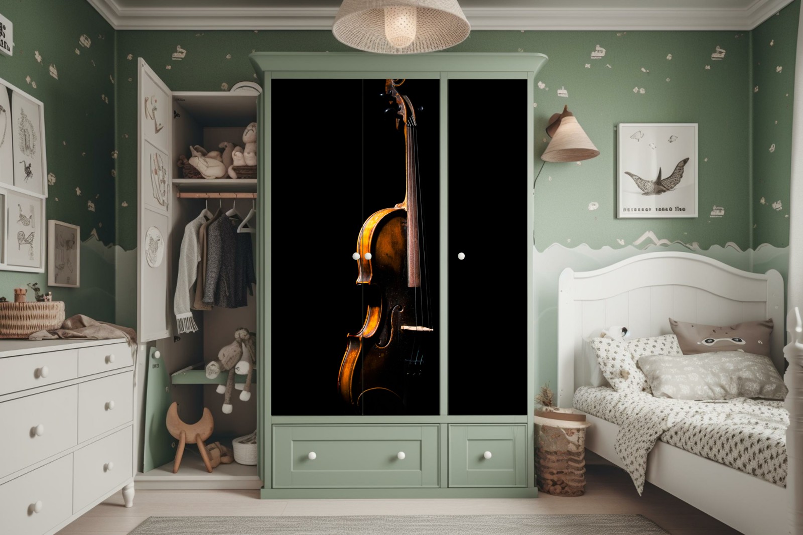 Schrankaufkleber Elegante vintage-geige vor schwarzem hintergrund
