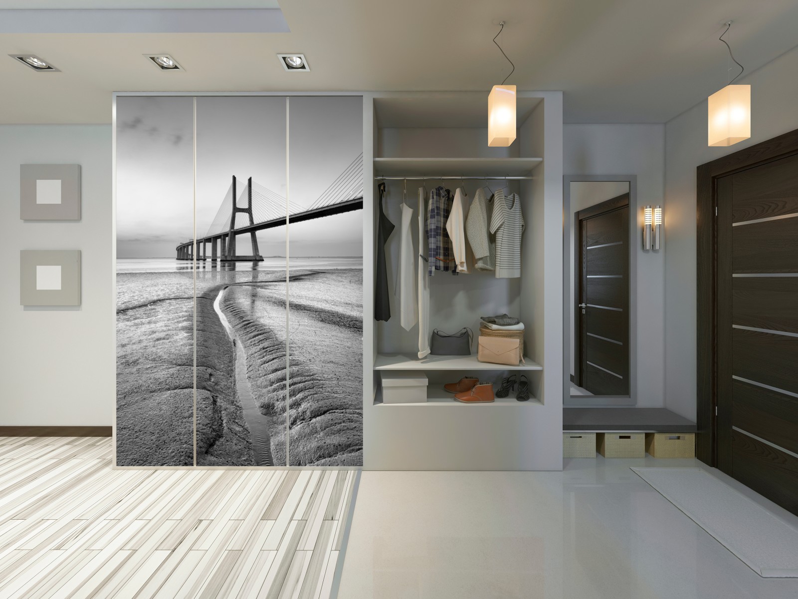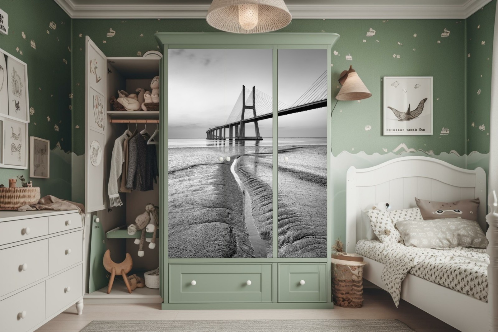 Schrankaufkleber Minimalistische seilbrücke in monochrom