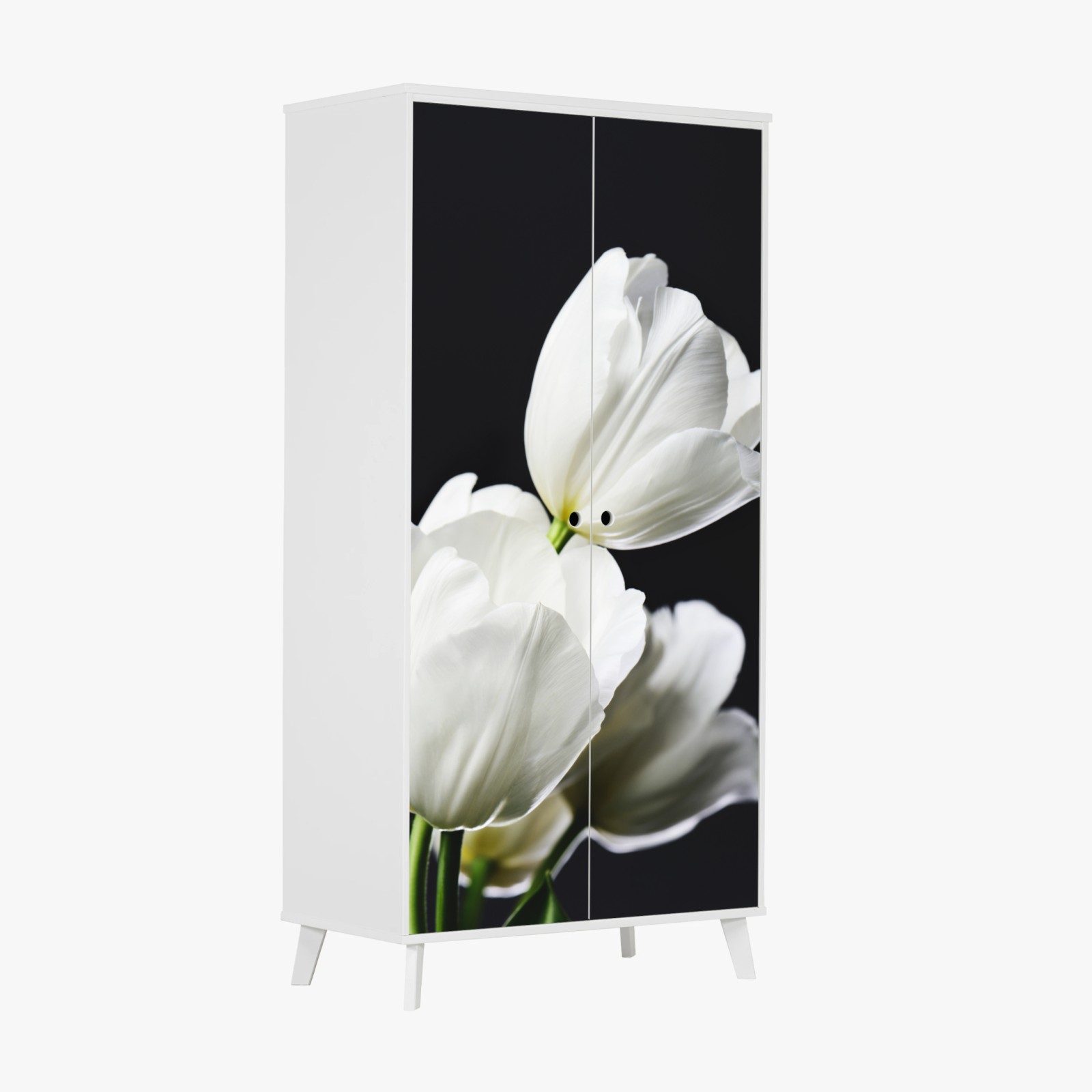 Schrankaufkleber Weißer tulpenstrauß vor dunklem hintergrund