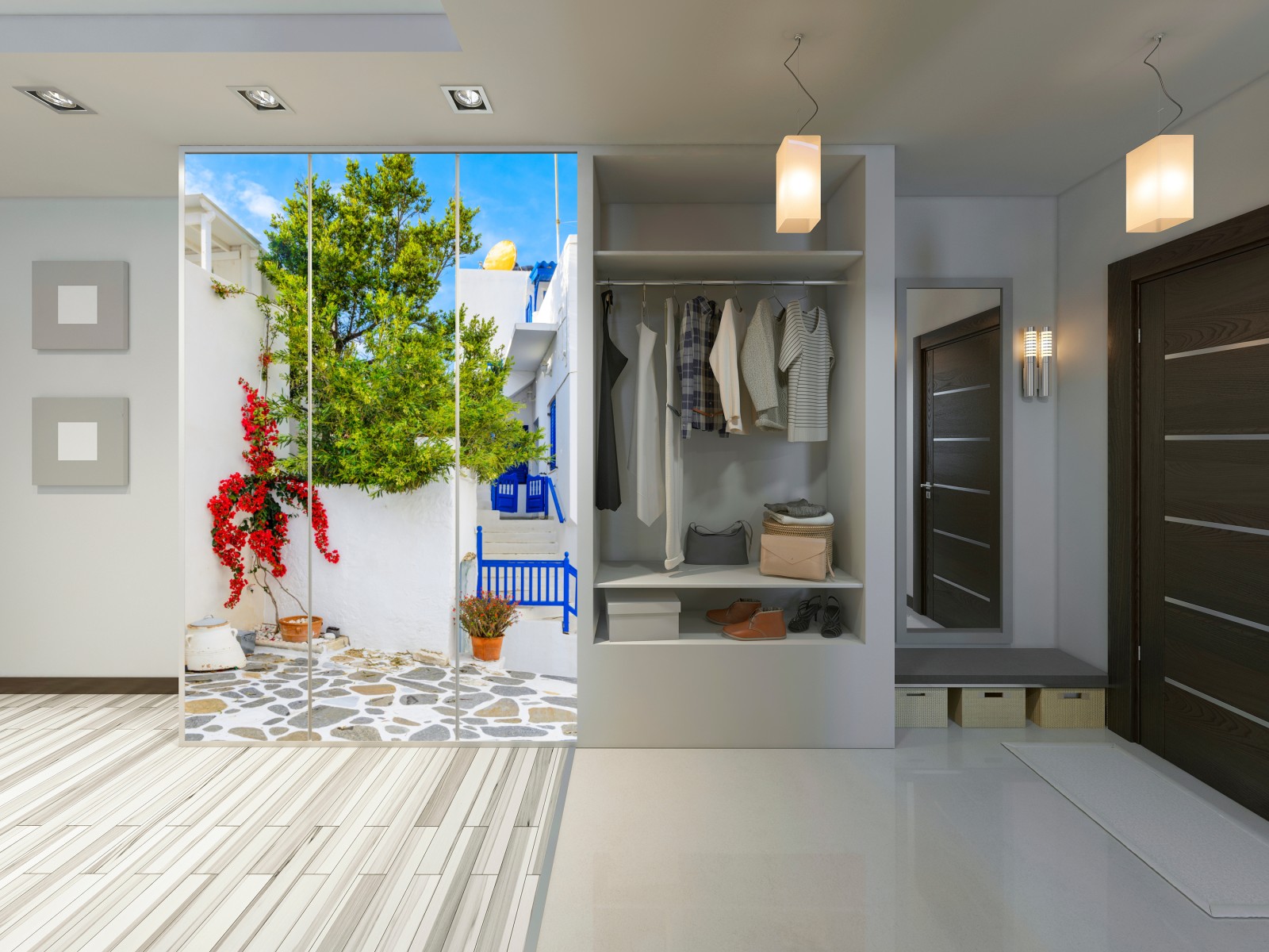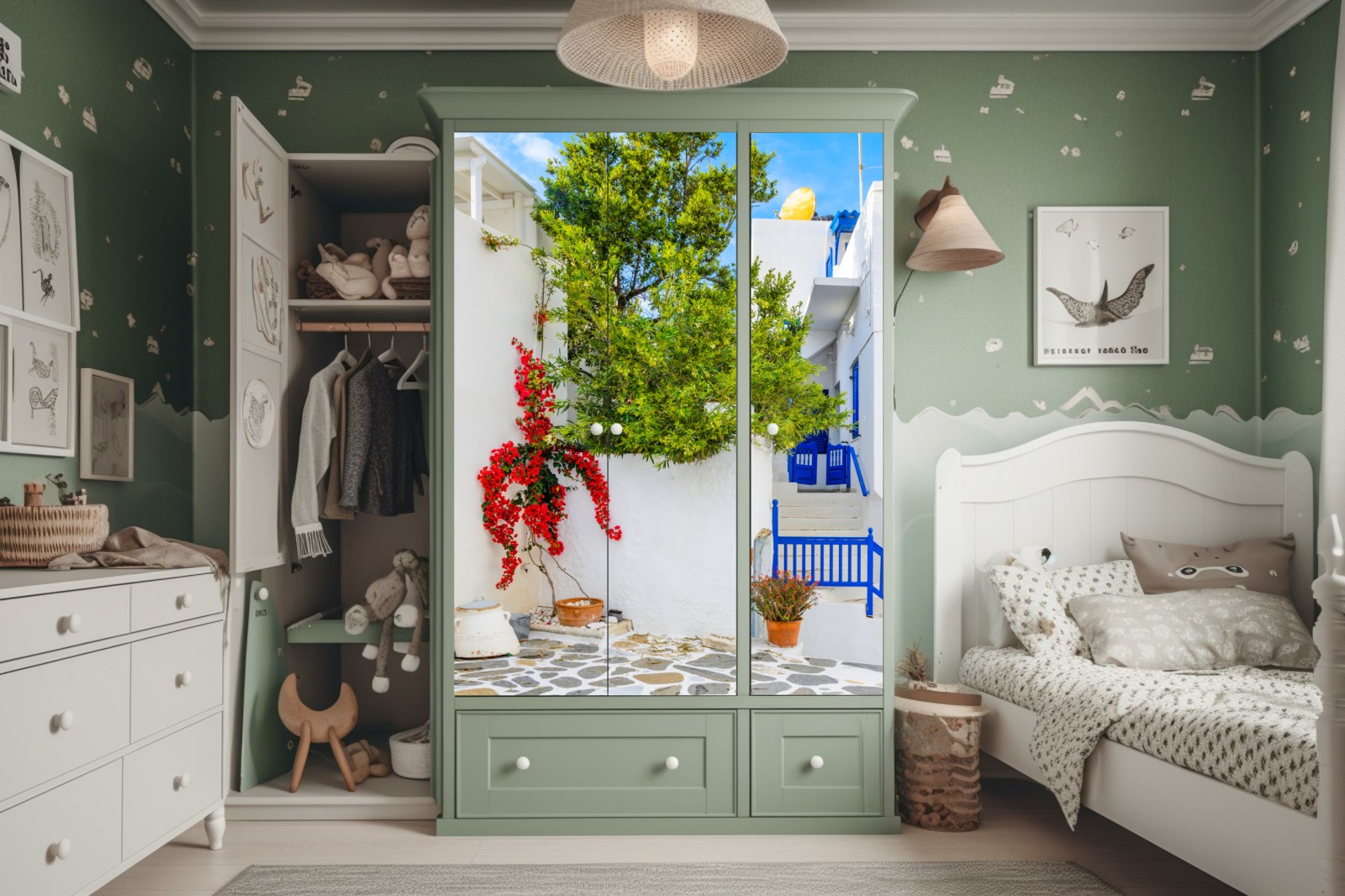 Schrankaufkleber Sonniger mediterraner innenhof mit bougainvillea