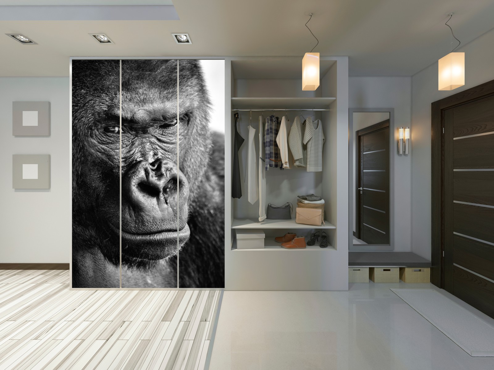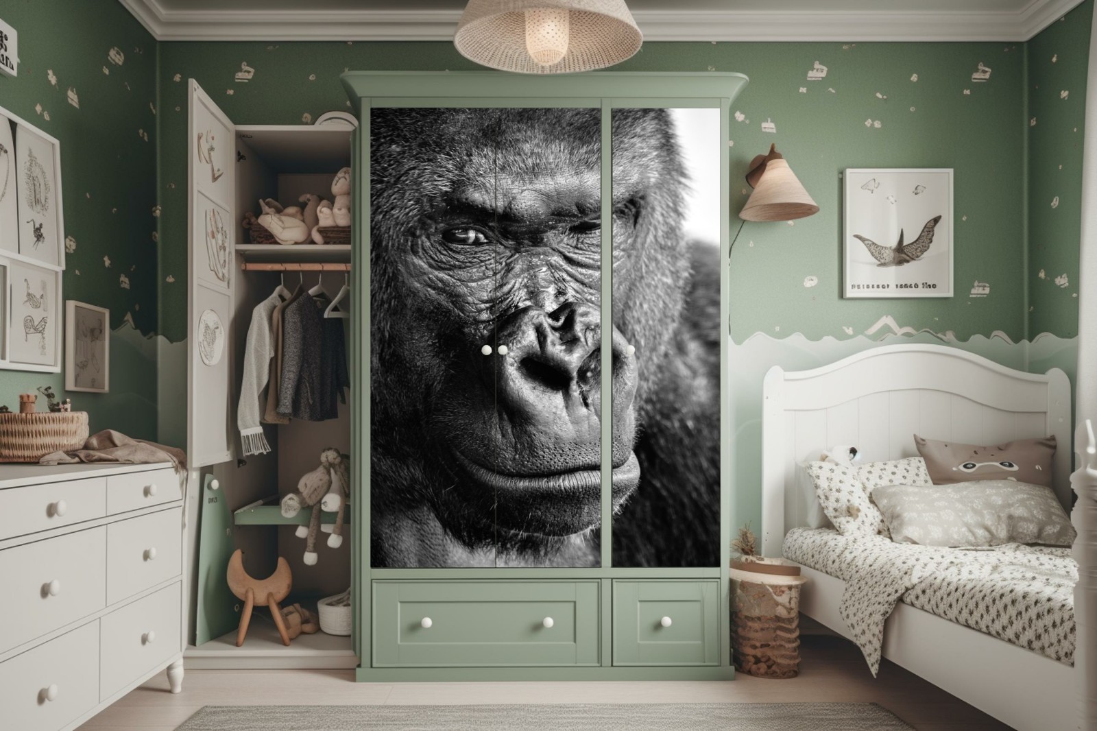 Schrankaufkleber Intensives gorilla-porträt in schwarzweiß