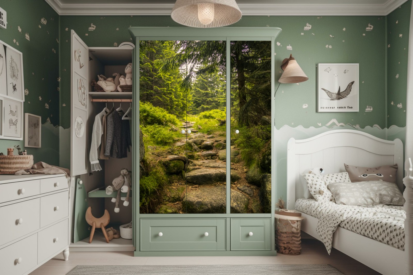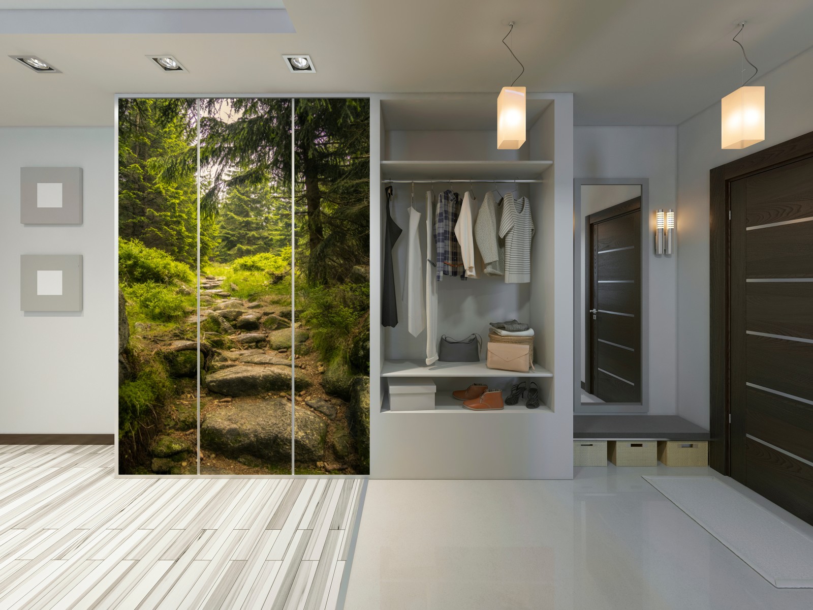 Schrankaufkleber Ruhiger waldweg durch nadelwald