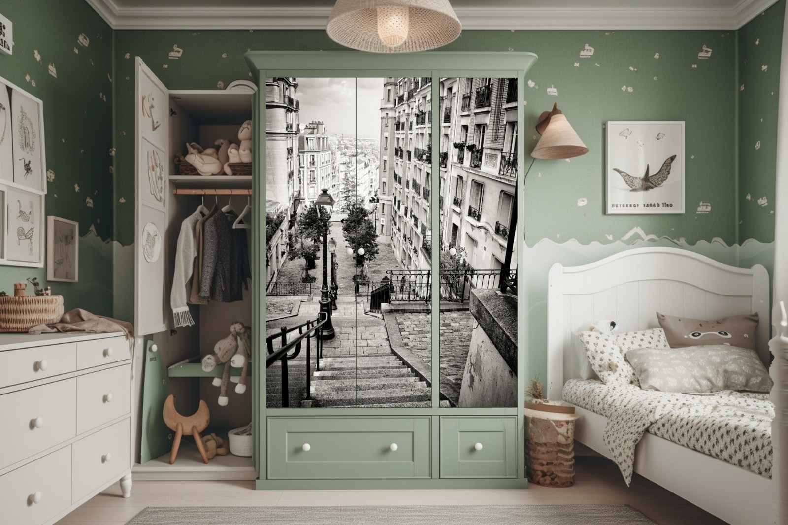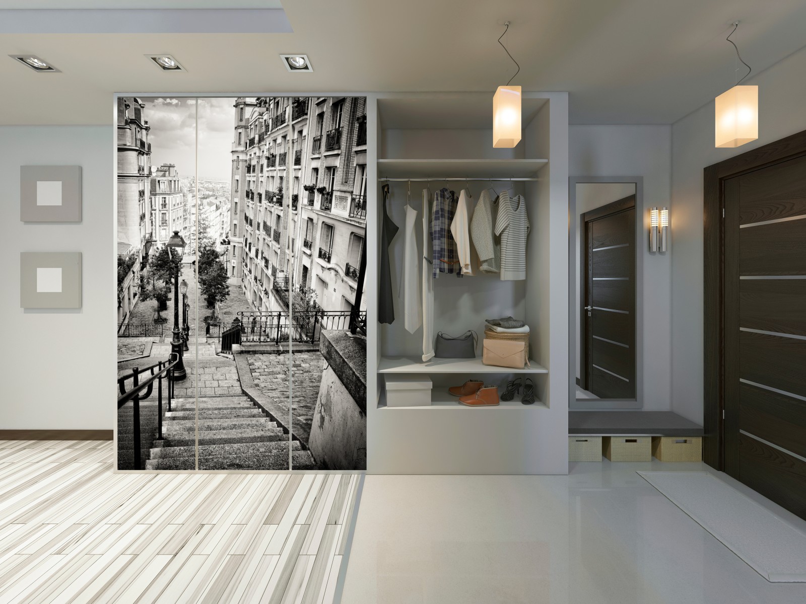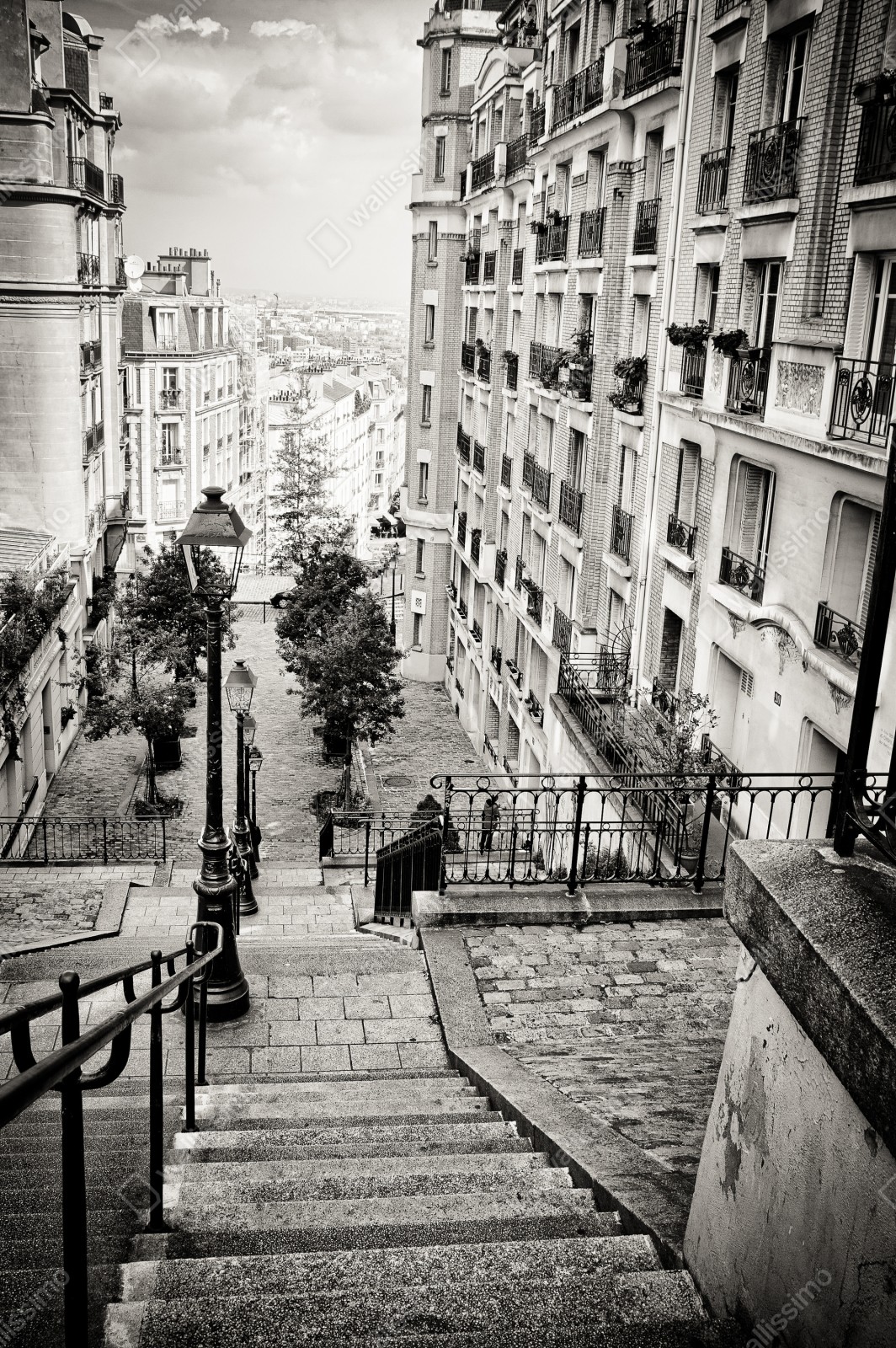 Schrankaufkleber Städtische treppe in schwarzweiß