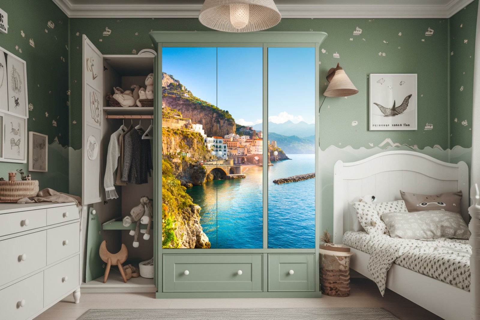 Schrankaufkleber Sonniges küstendorf am klippenrand