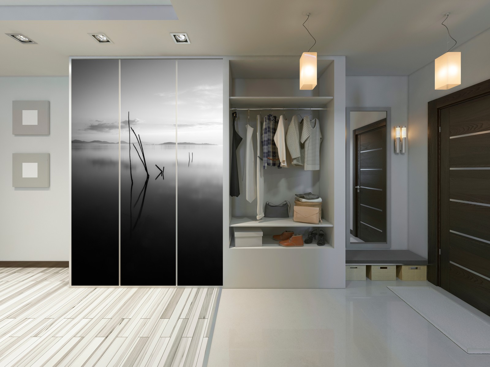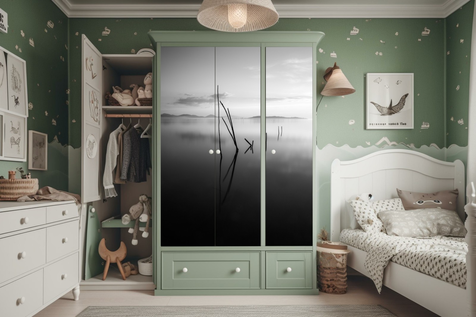 Schrankaufkleber Ruhiger monochromer see mit reflexionen
