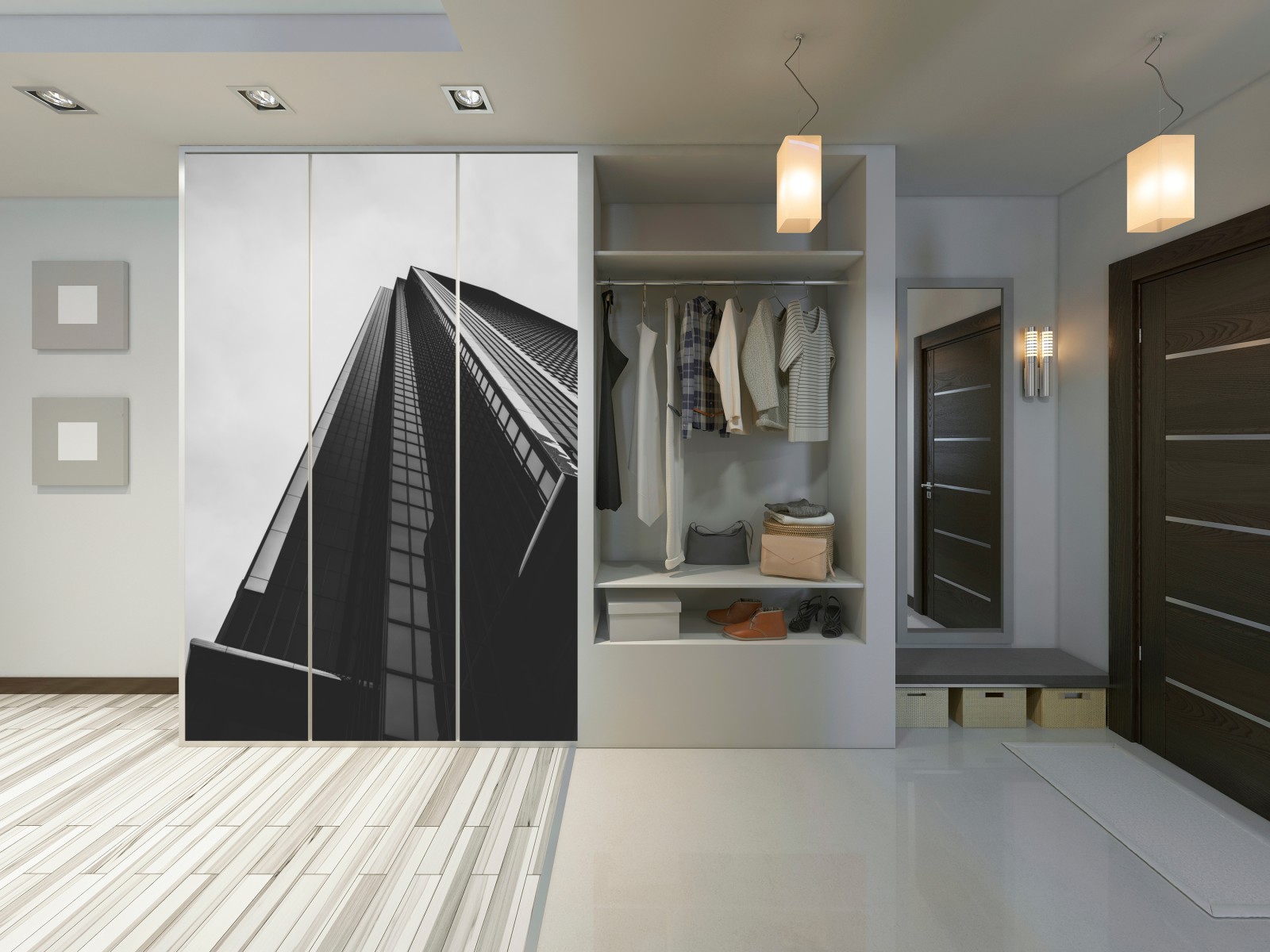 Schrankaufkleber Monochromer wolkenkratzer in perspektive
