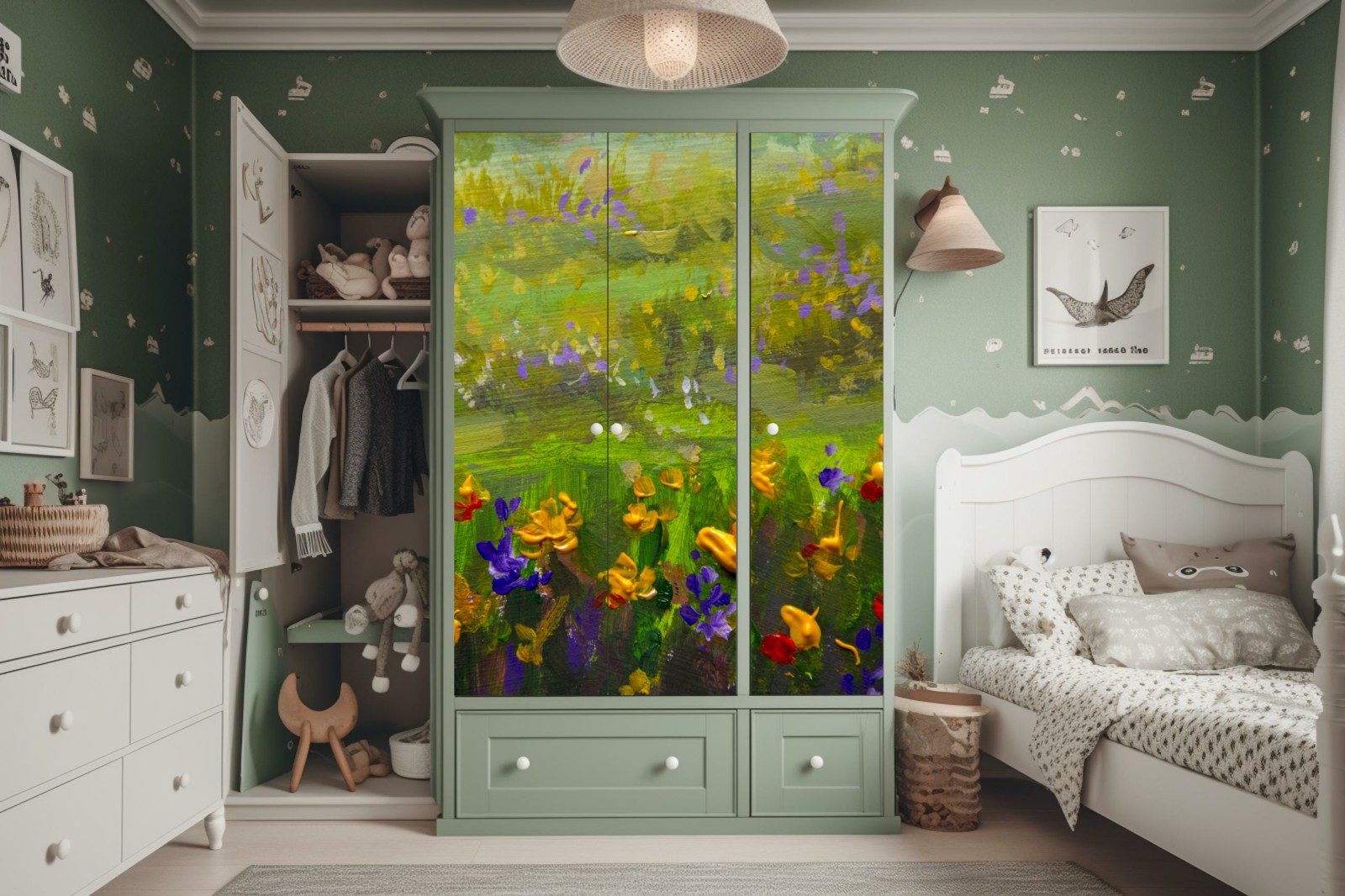 Schrankaufkleber Lebendige wiese ölmalerei nahaufnahme