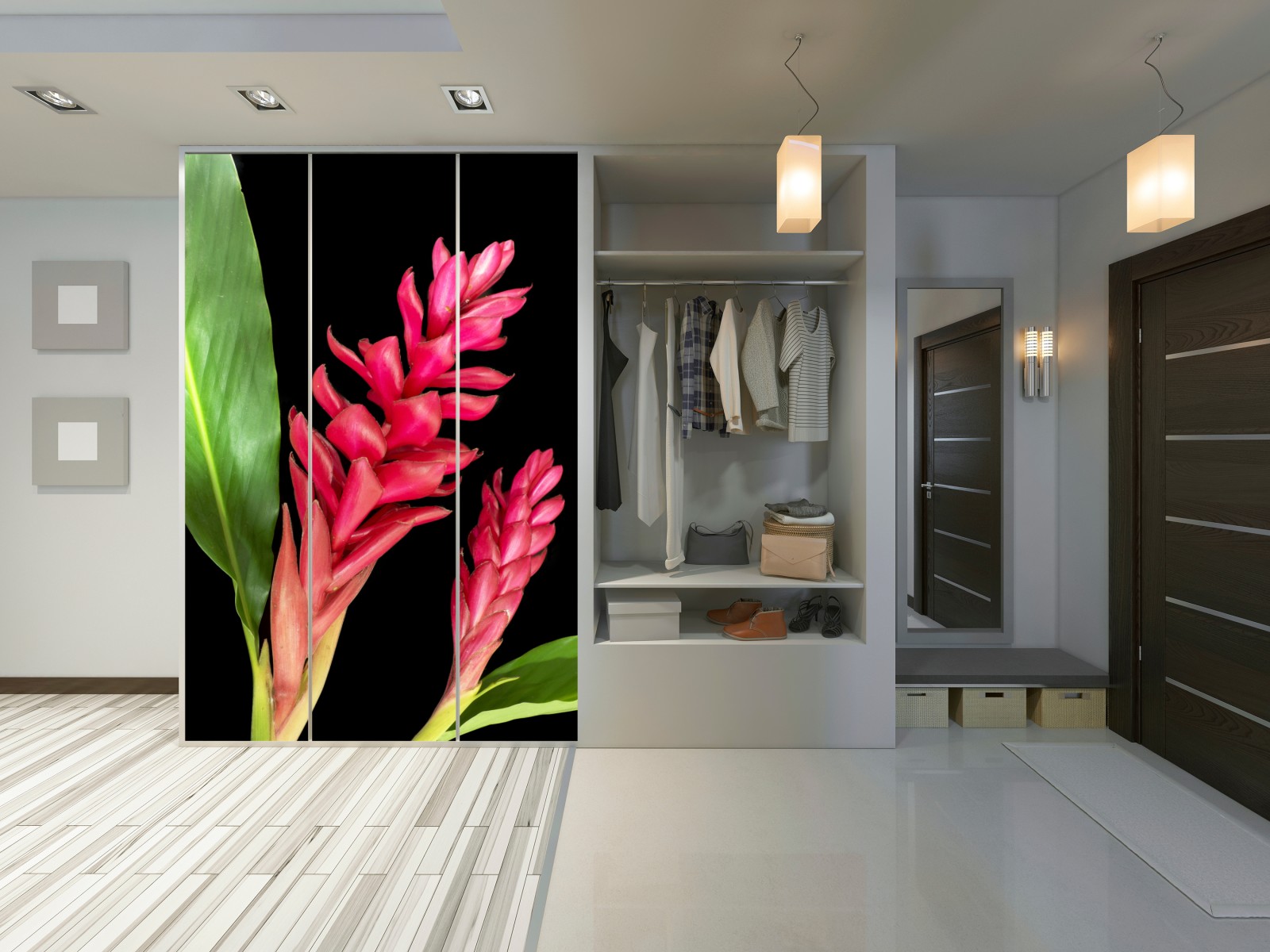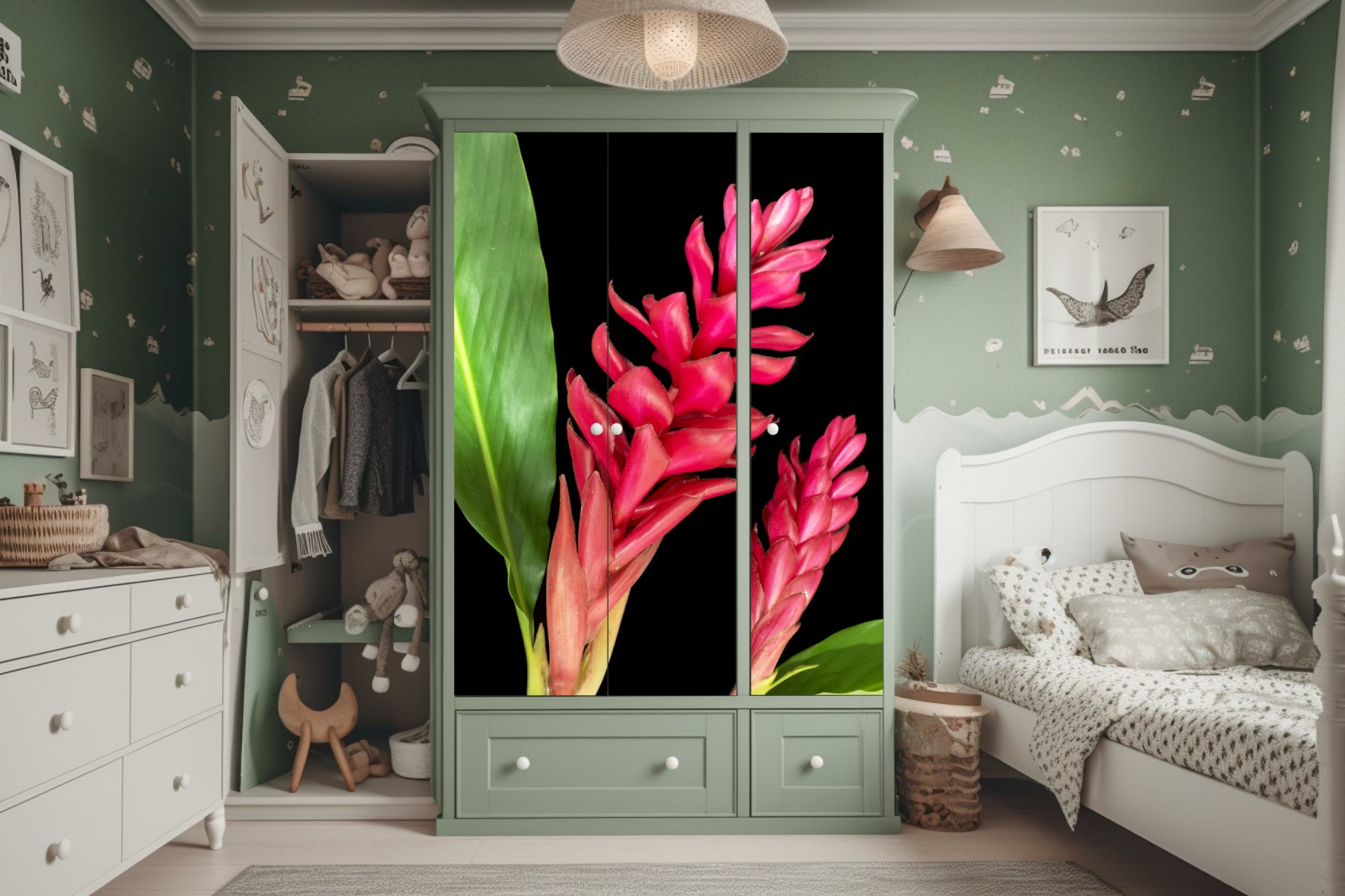 Schrankaufkleber Leuchtende zier-ingwer-blüte auf schwarzem hintergrund