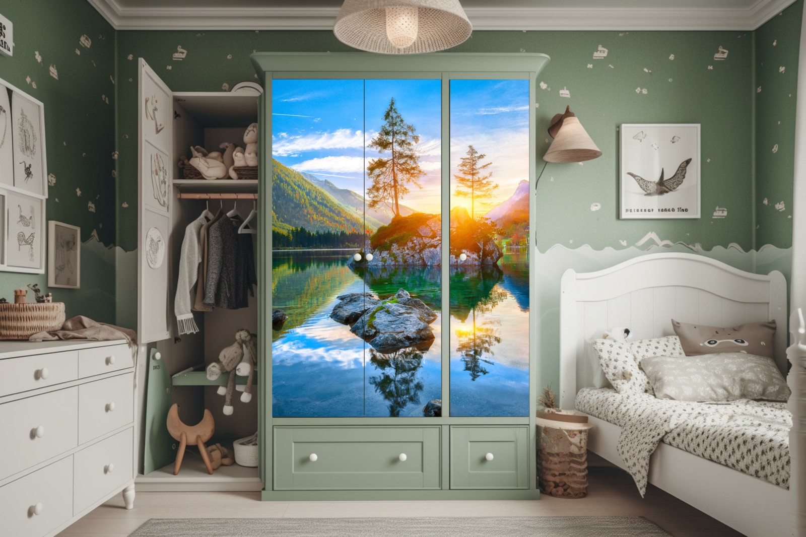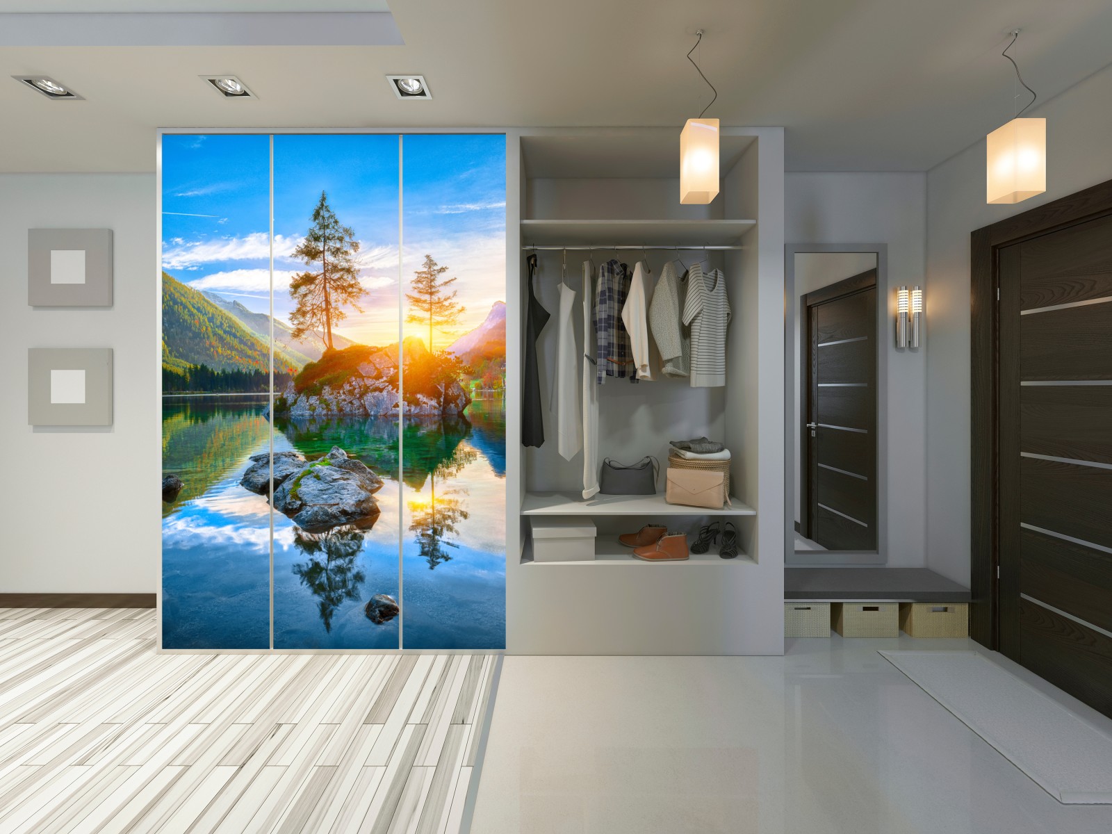 Schrankaufkleber Sonnenuntergang über Hintersee felseninsel