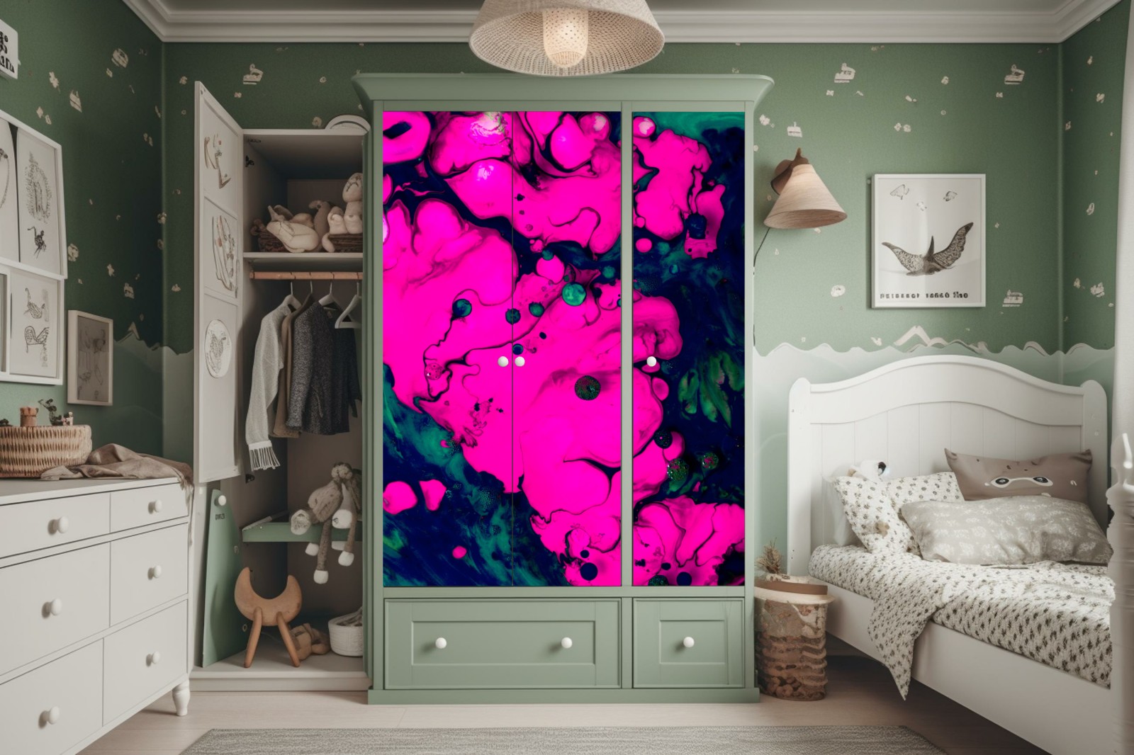 Schrankaufkleber Neonpink flüssige abstraktion