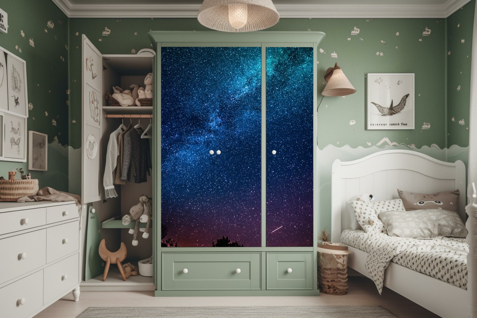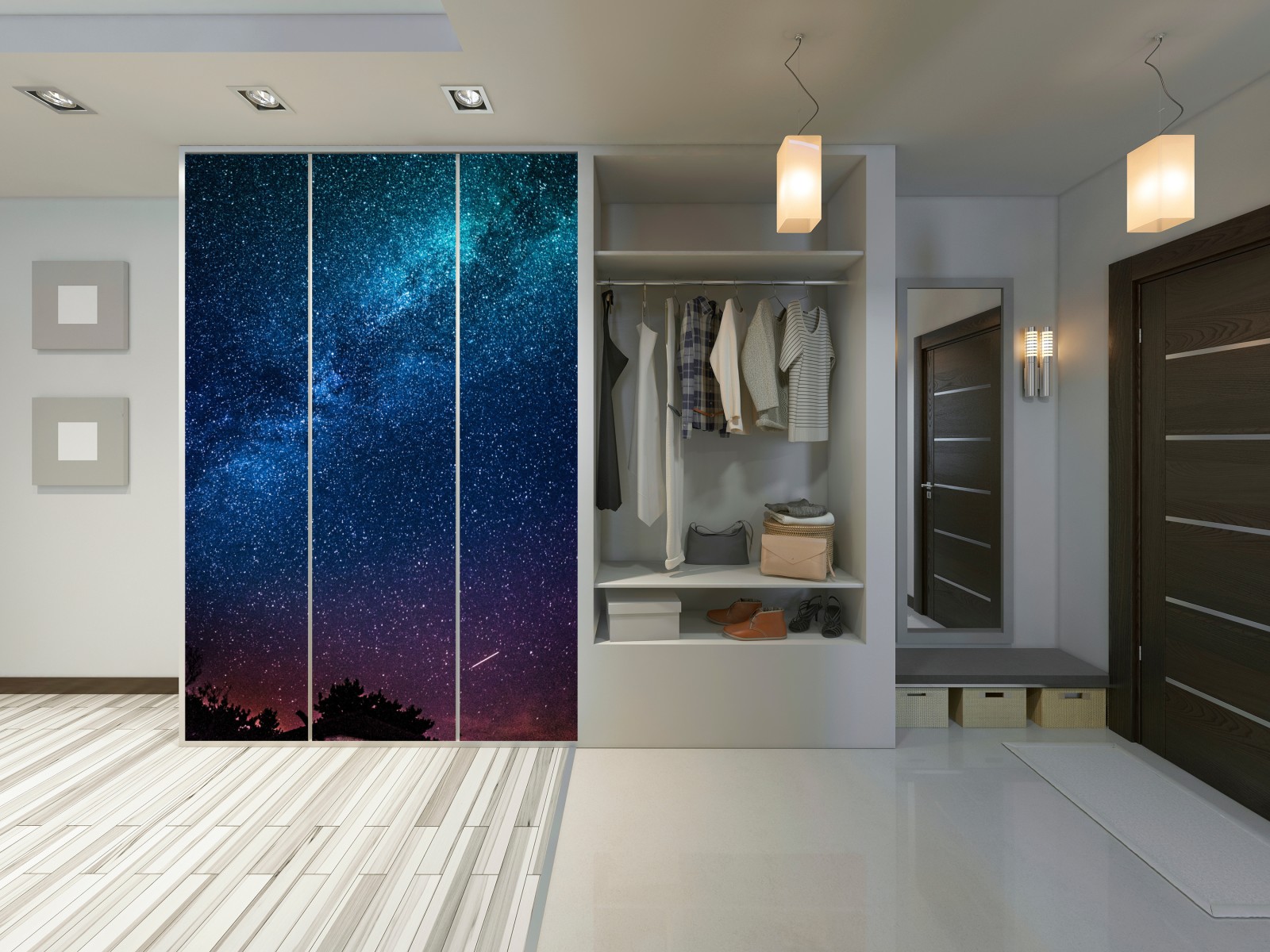 Schrankaufkleber Tiefblauer nachthimmel mit milchstraße und sternschnuppe