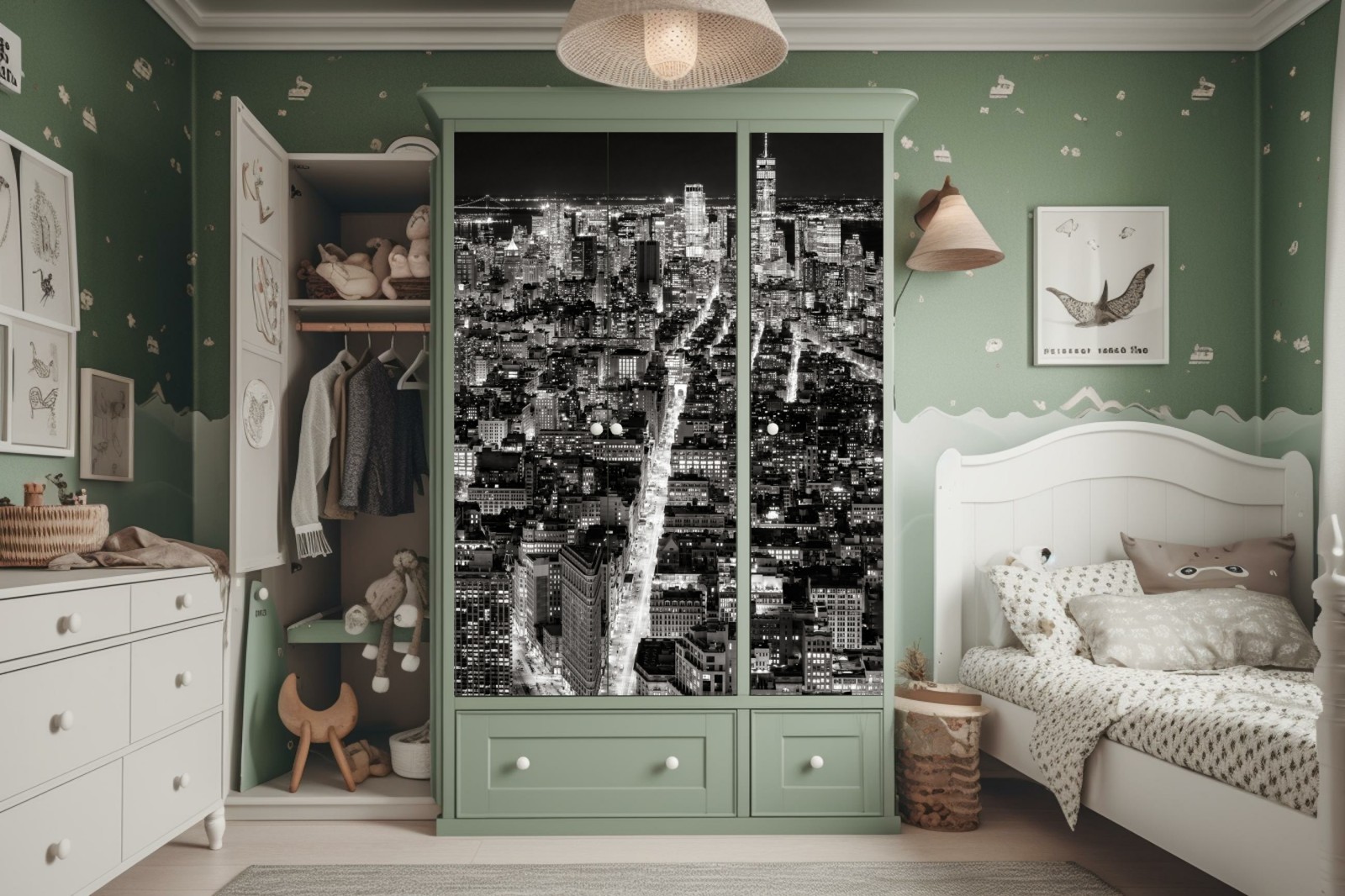 Schrankaufkleber Monochrome stadtansicht bei nacht