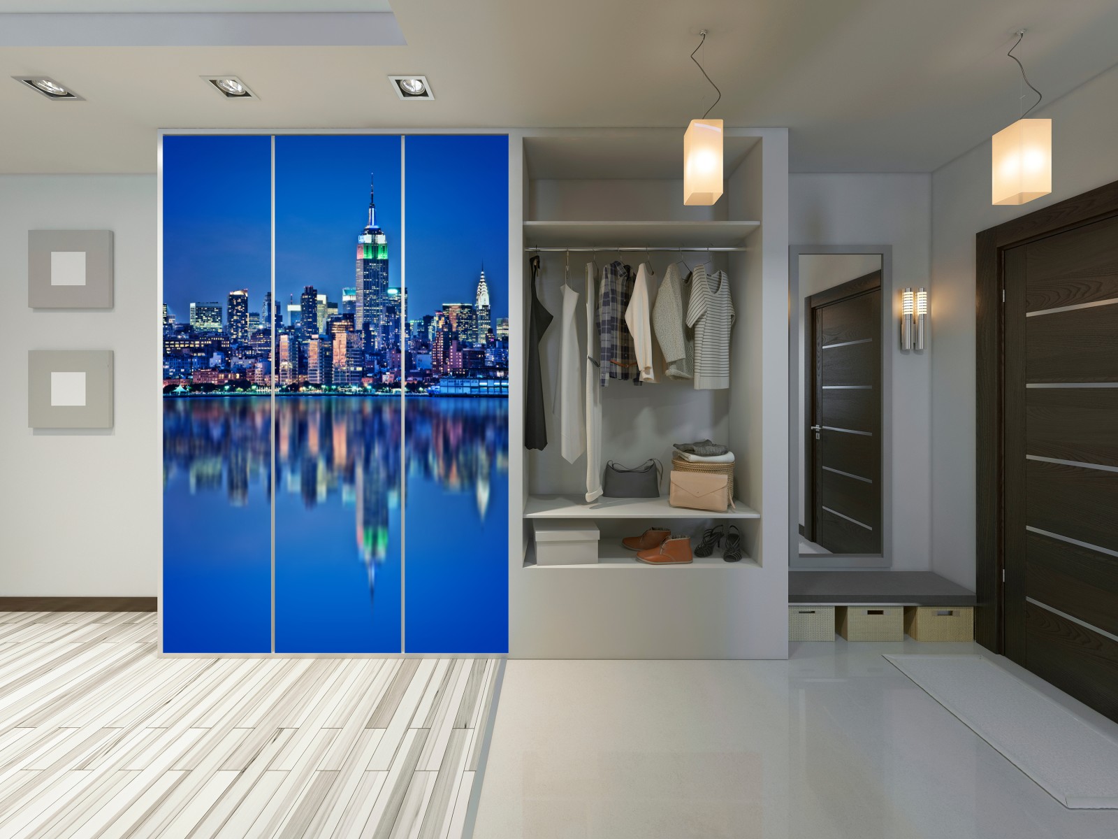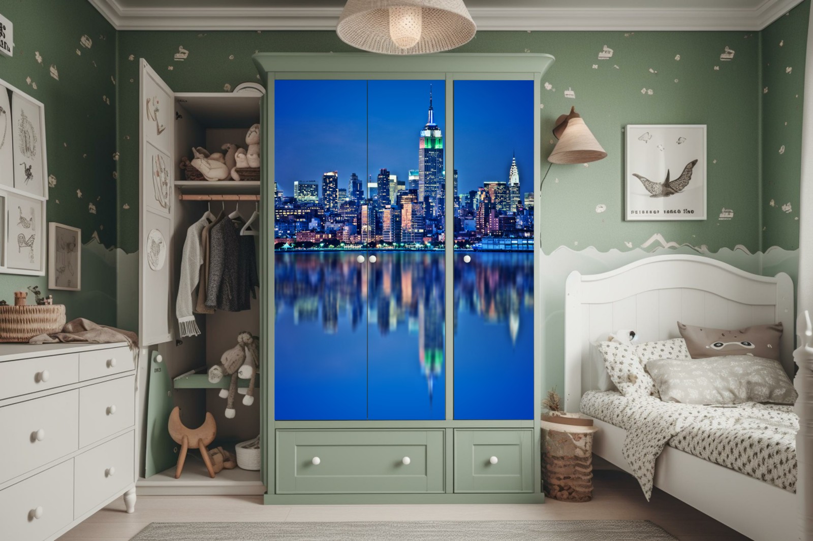 Schrankaufkleber New York skyline bei nacht mit spiegelung