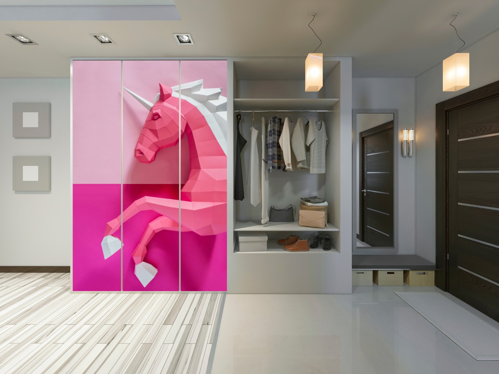 Schrankaufkleber Rosa geometrisches einhorn