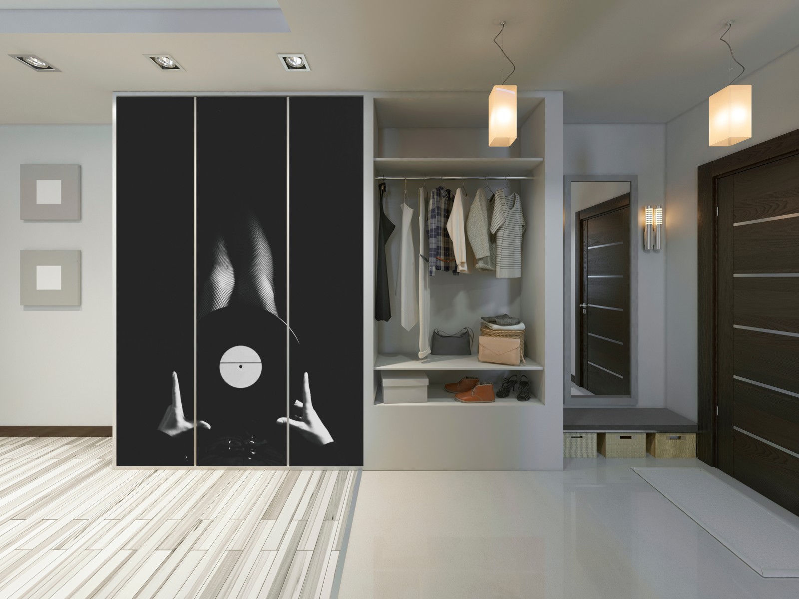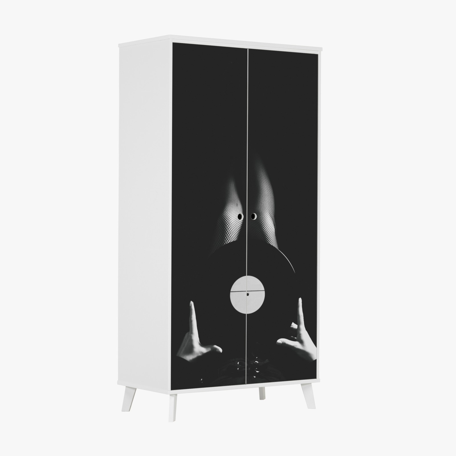 Schrankaufkleber Schallplatte und beine in netzstrümpfen