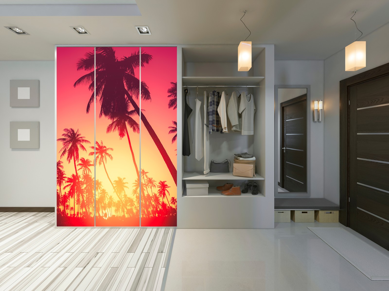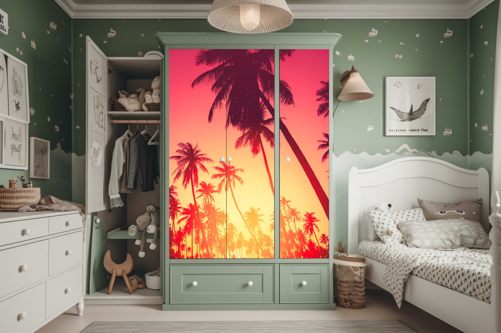 Schrankaufkleber Tropischer sonnenuntergang mit palmen