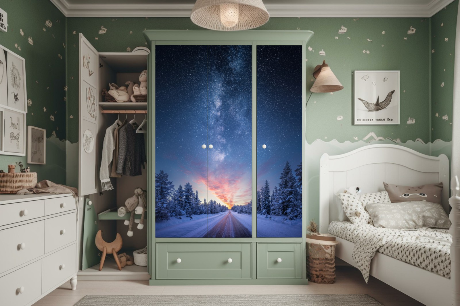 Schrankaufkleber Straße zur milchstraße bei sonnenaufgang