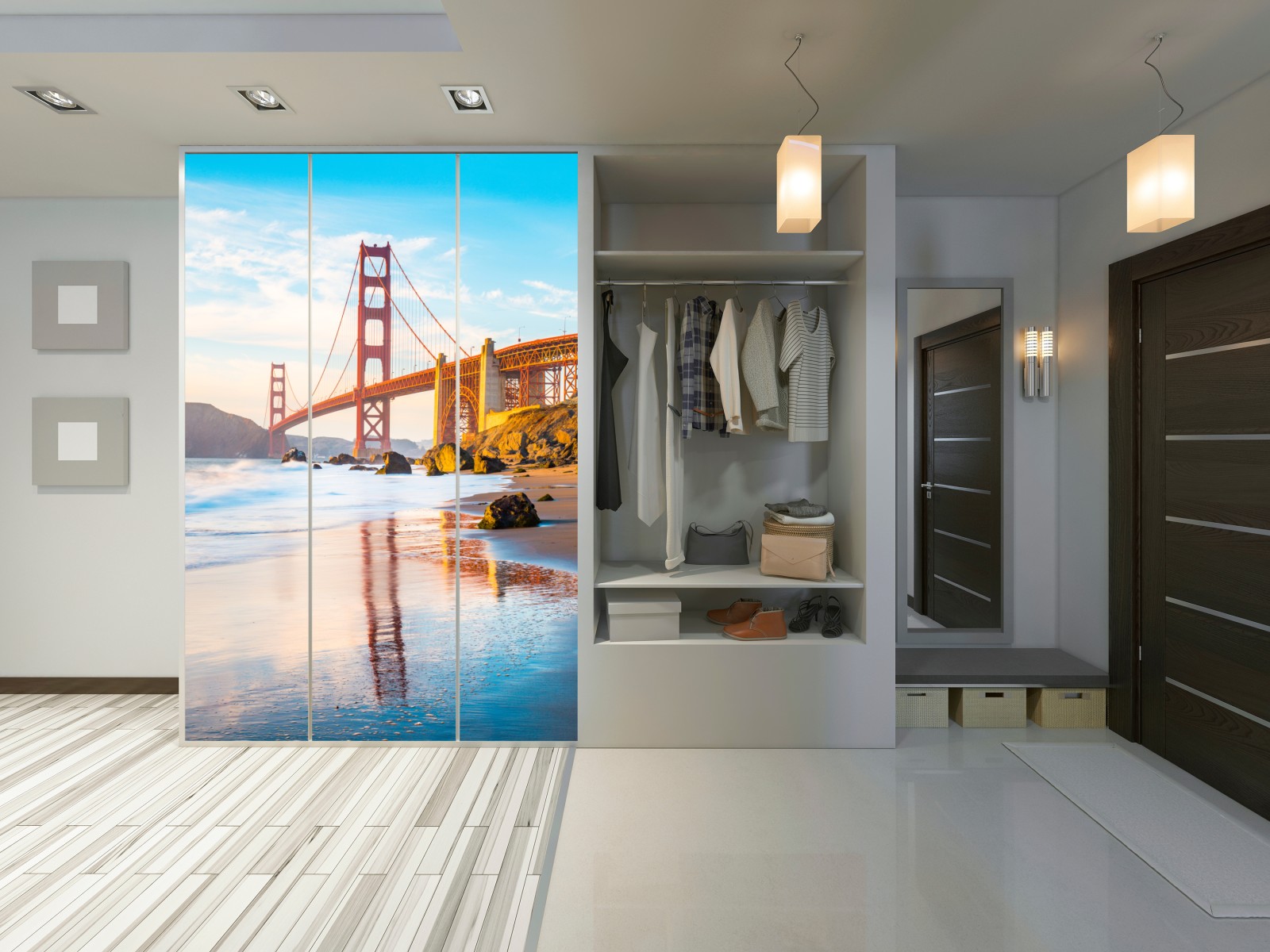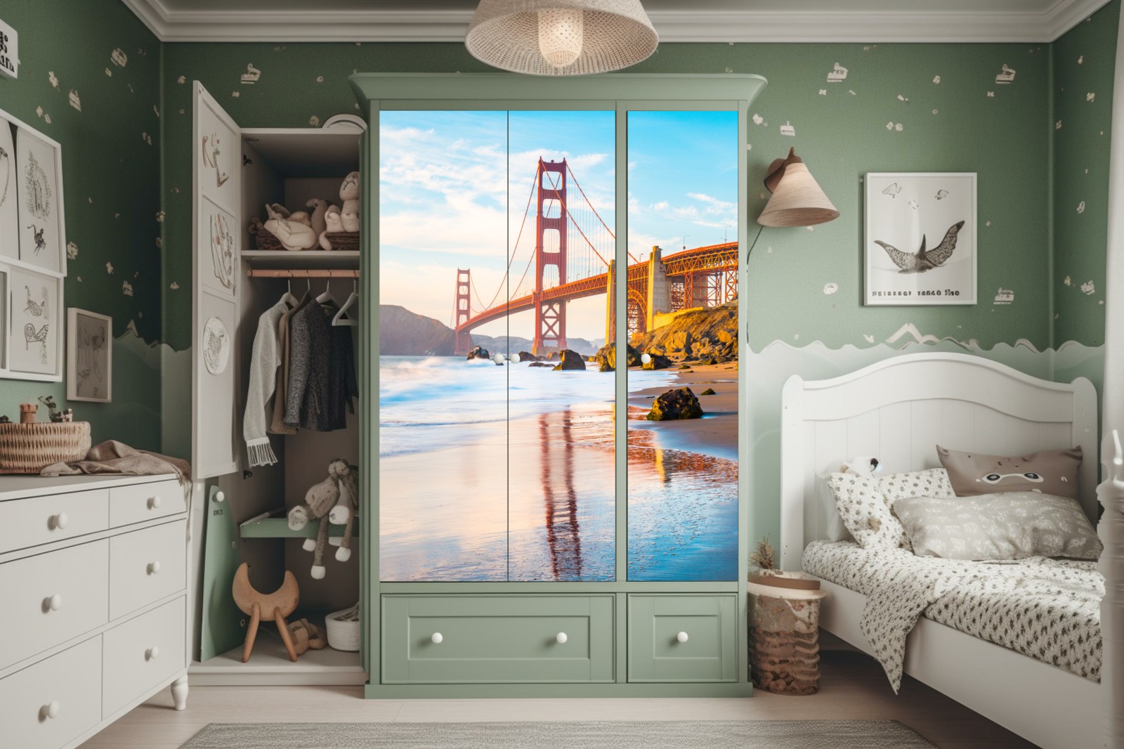 Schrankaufkleber Goldene stunde an der Golden Gate Bridge, Baker Beach