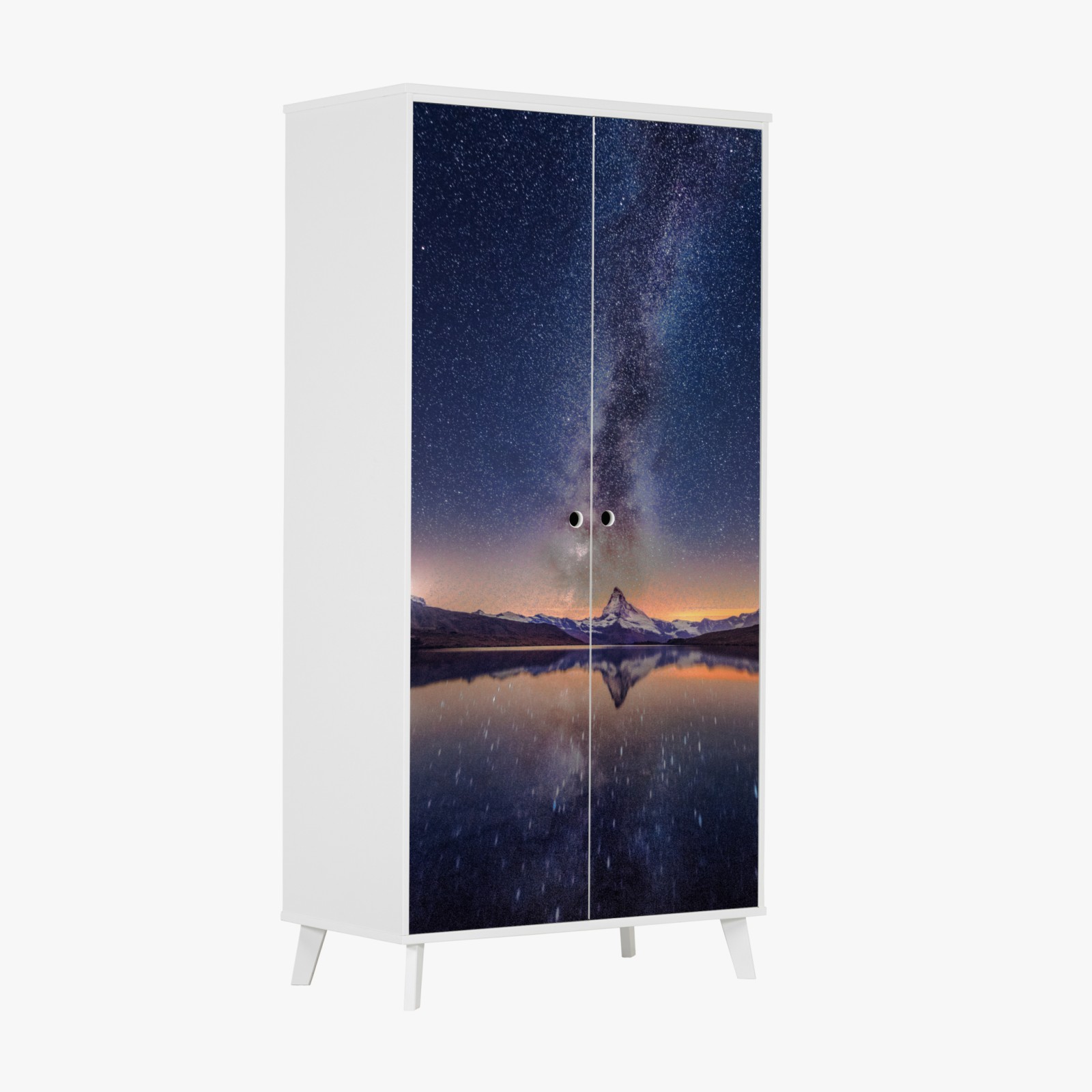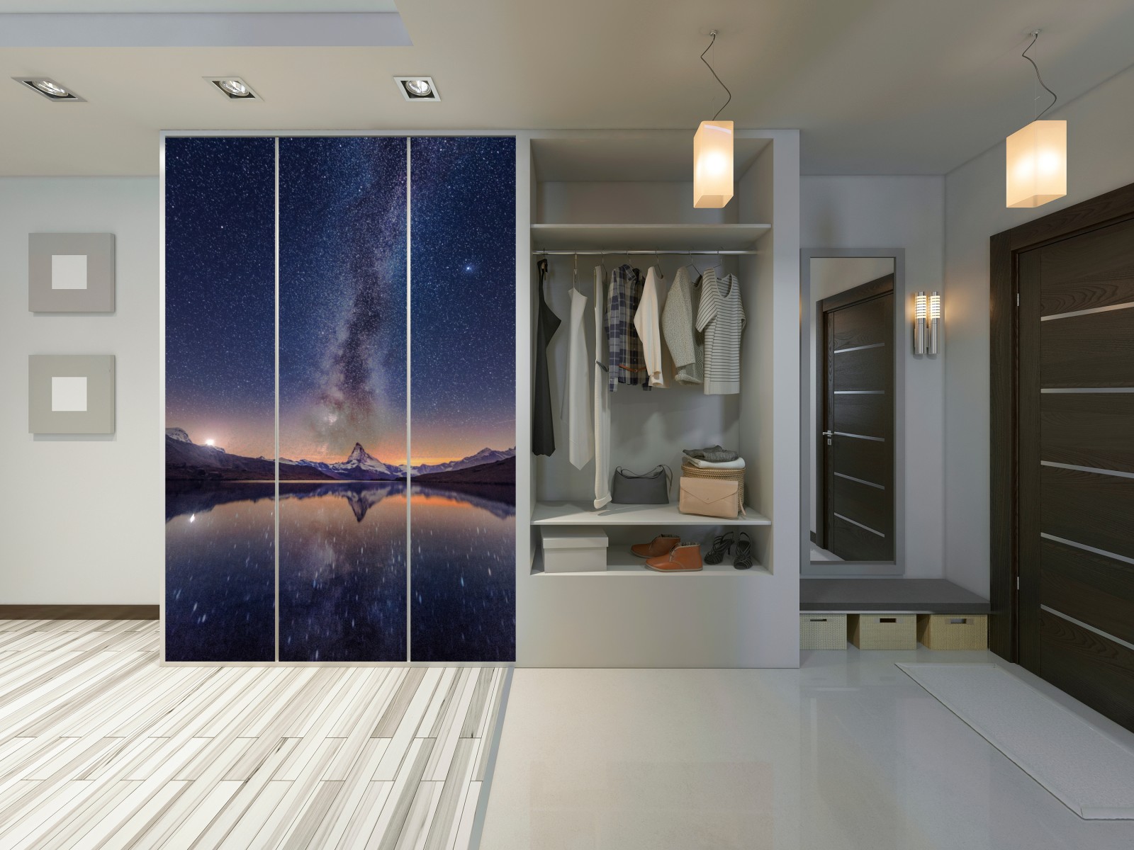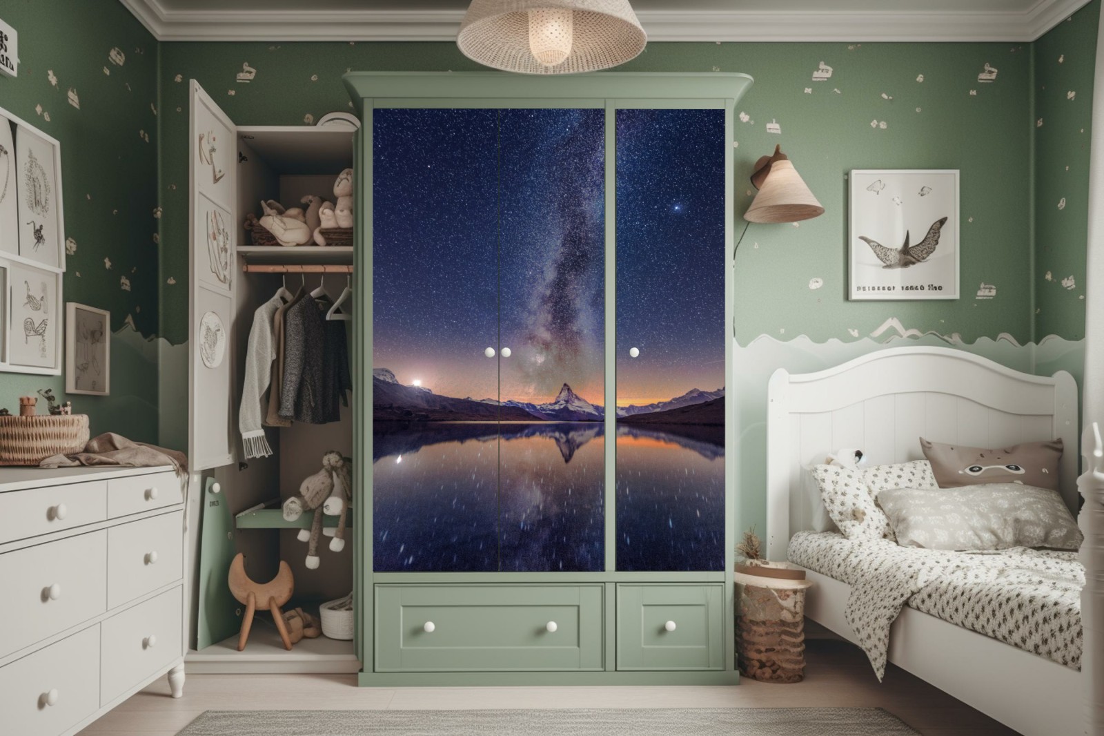 Schrankaufkleber Milchstraße über alpengipfel gespiegelt im see