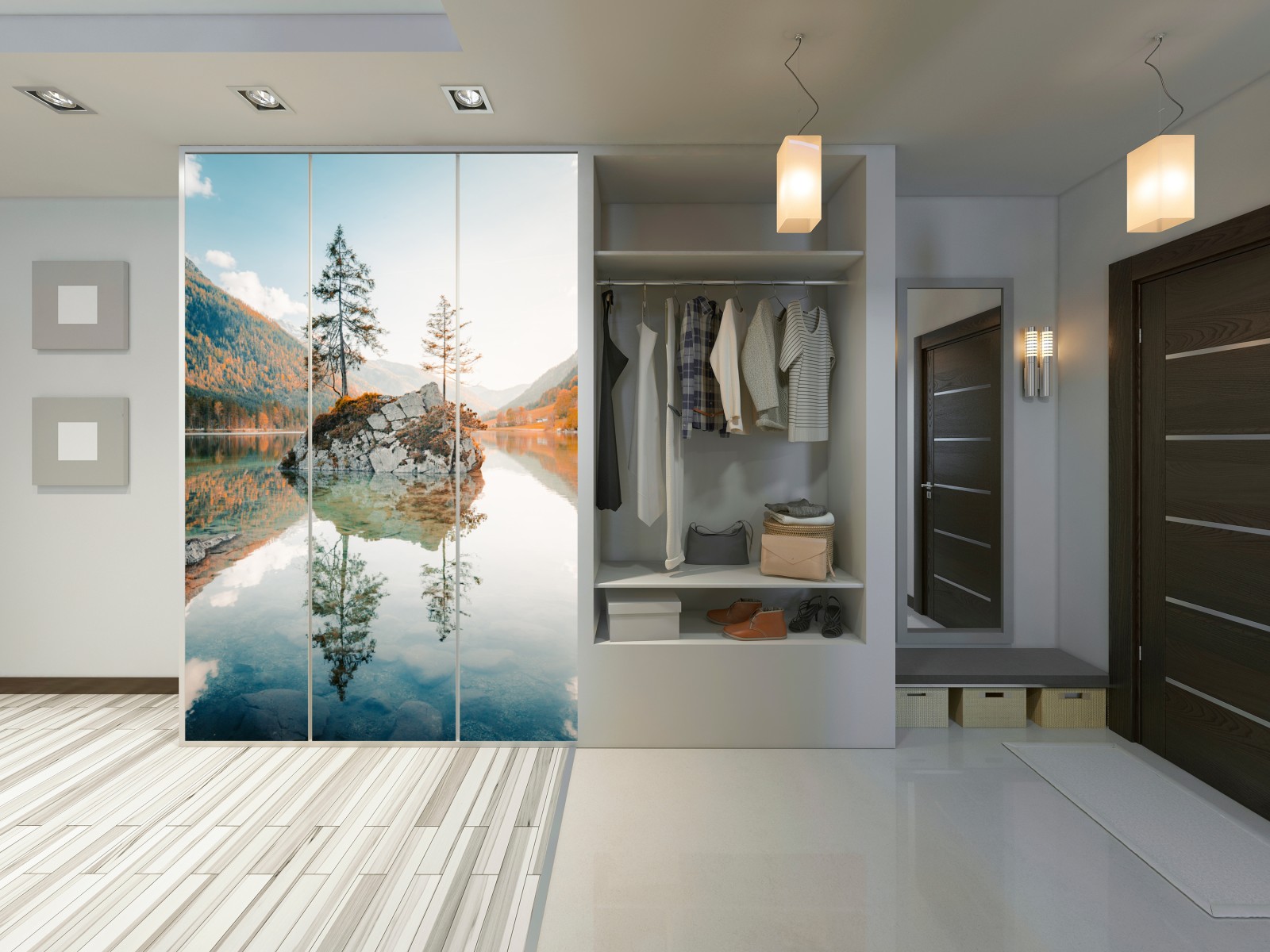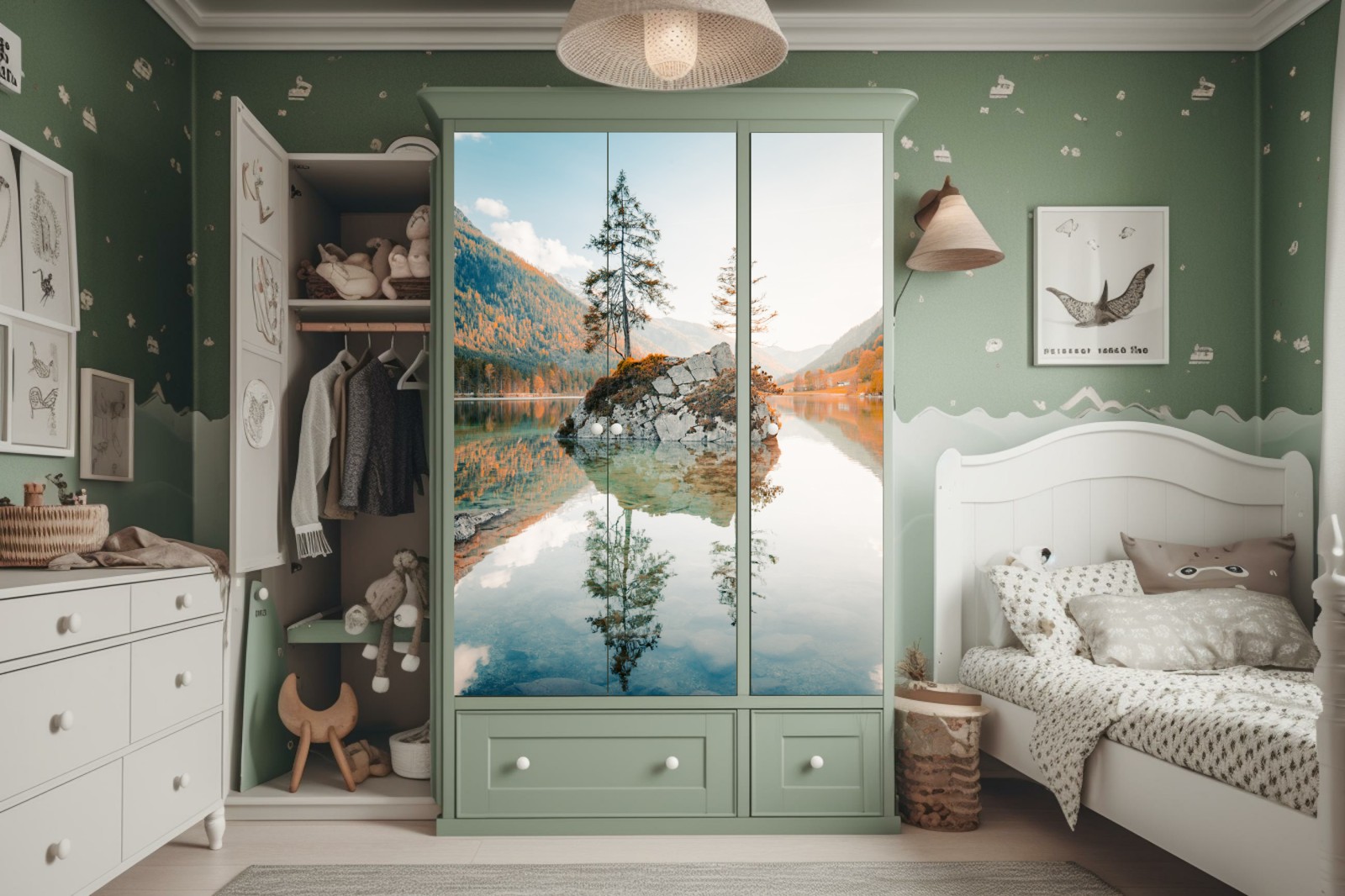 Schrankaufkleber Sonnenbeleuchtete felsinsel am Hintersee