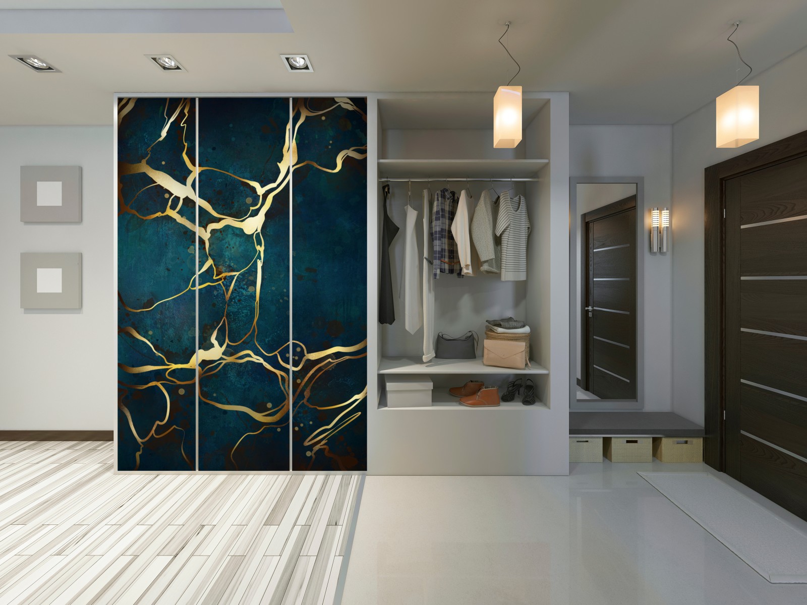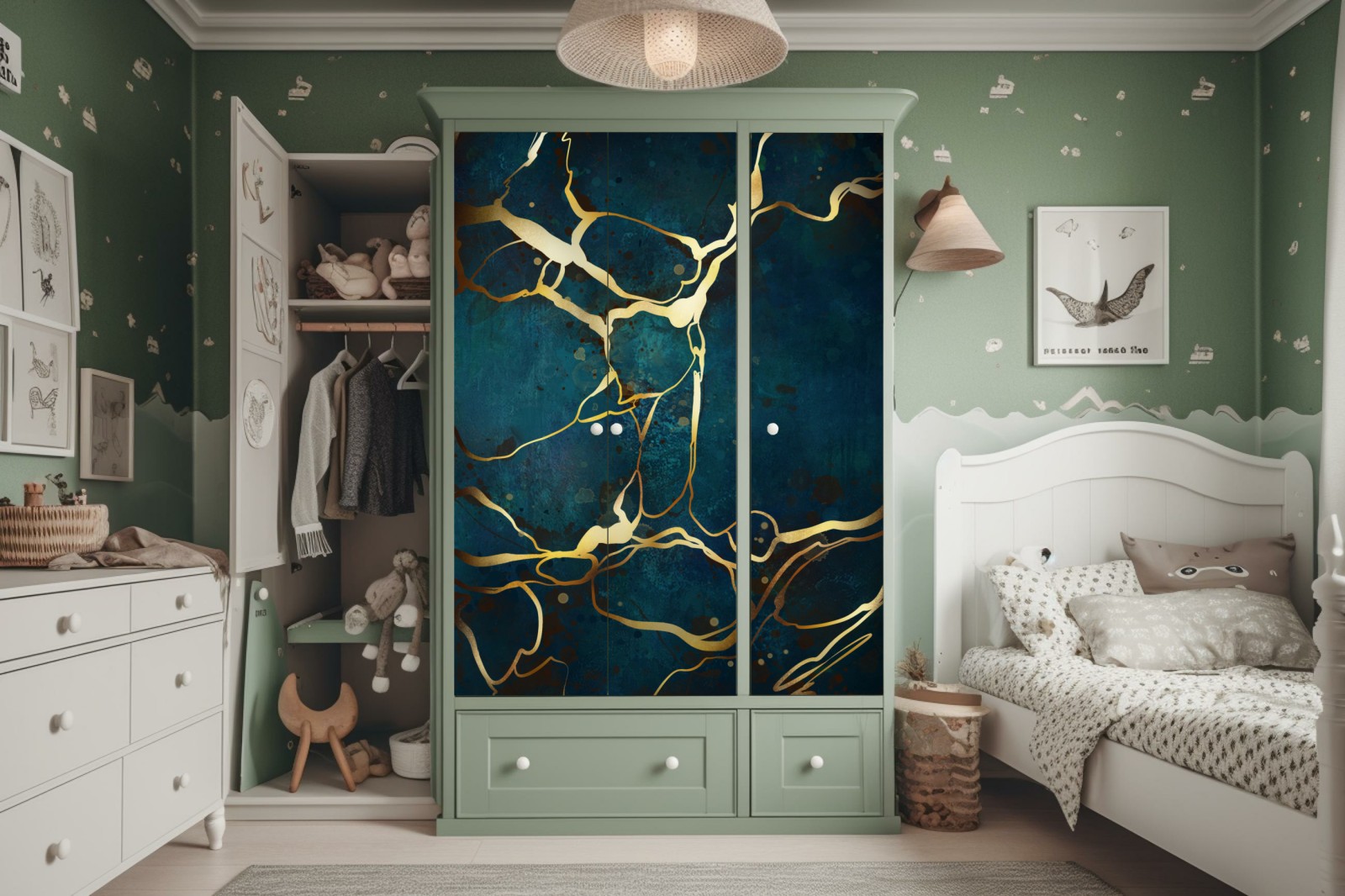 Schrankaufkleber Türkis und gold abstrakt mit goldenen adern