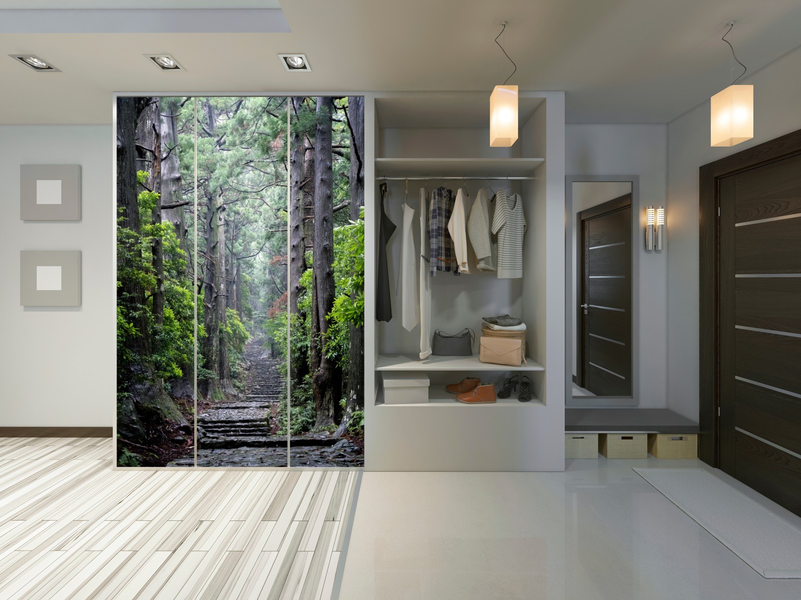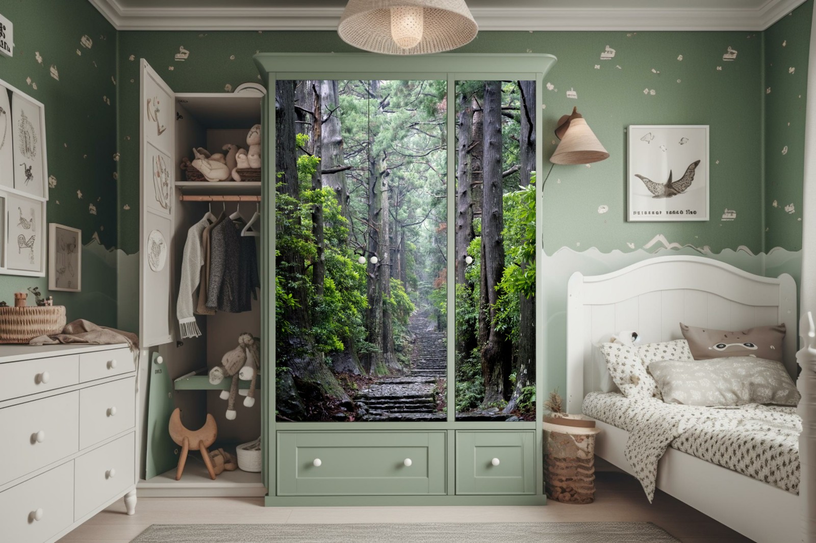 Schrankaufkleber Mystischer waldweg zwischen alten bäumen