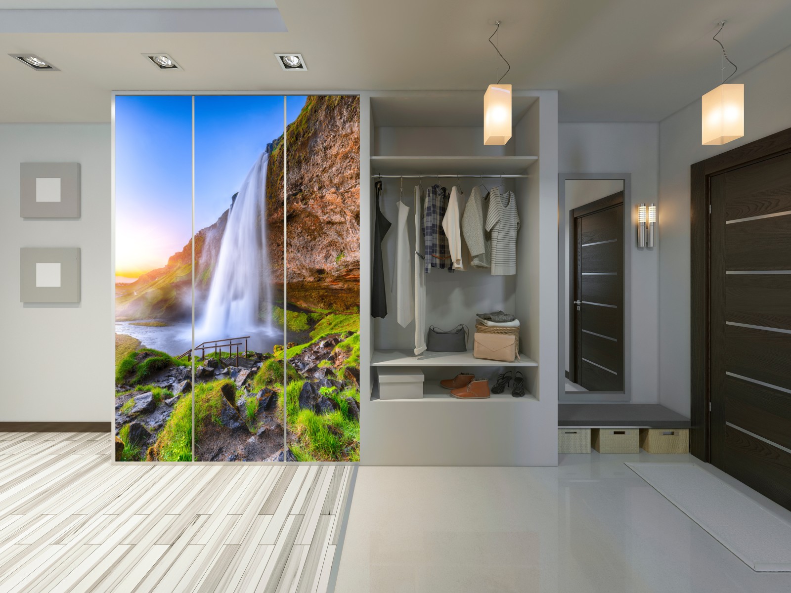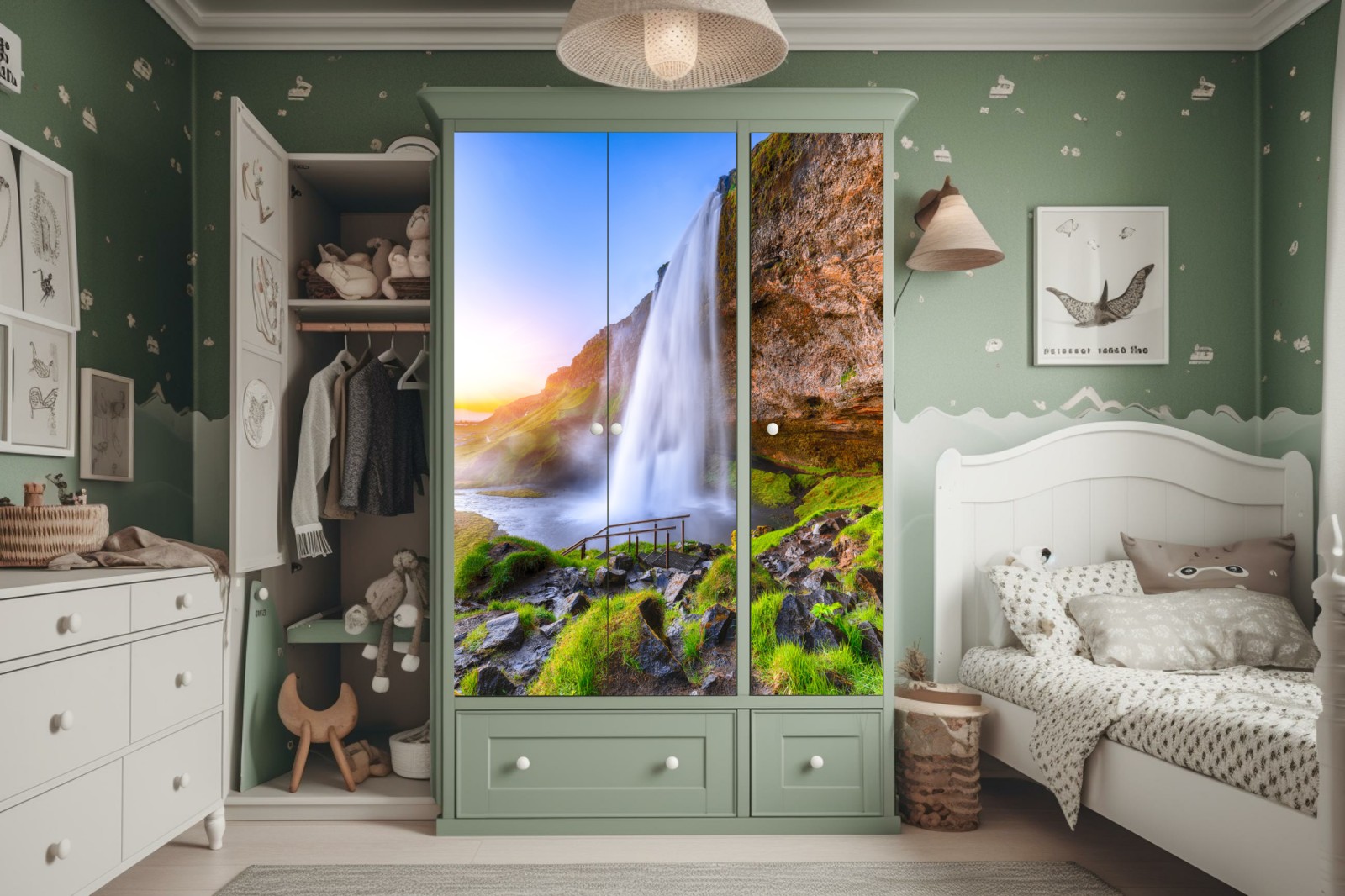 Schrankaufkleber Seljalandsfoss wasserfall im sonnenuntergang